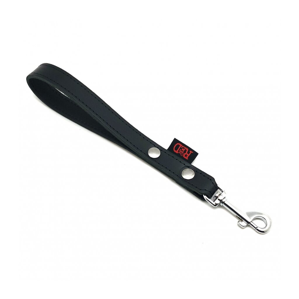This accessory from The Red is a short leather leash with a metal snap hook. The strap is 18 cm long. Total length of 28 cm. Ideal for attaching a chain. Made of genuine cowhide. Vegetable tanning. Weight: 52 gr / Width: 2.0 cm / Depth: 5.0 cm / Height: 27.0 cm