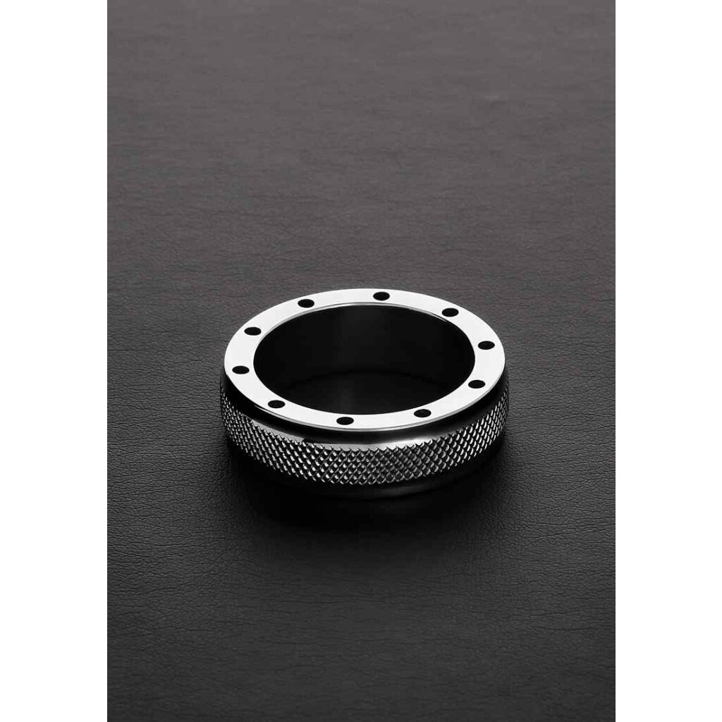 Dieser Penisring hat eine einzigartige gerändelte Außenseite und ist ringsum mit 11 Belüftungslöchern entworfen, um Sie unter Druck kühl zu halten.