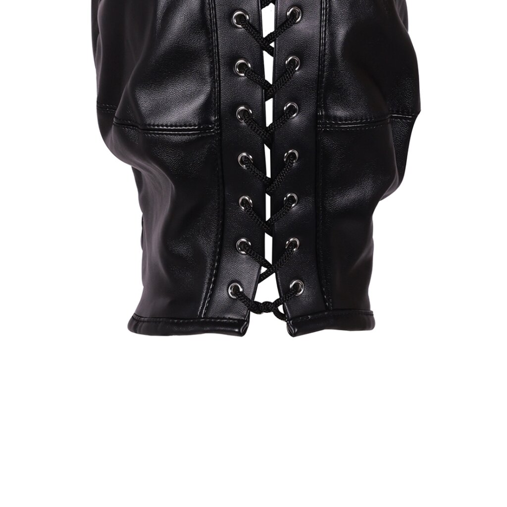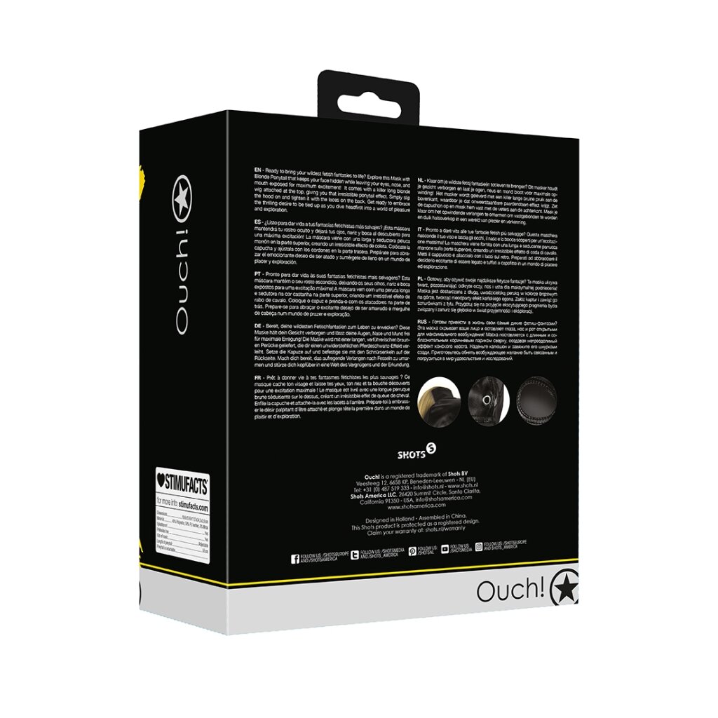 Shots Leder Maske mit blondem Pferdeschwanz schwarz