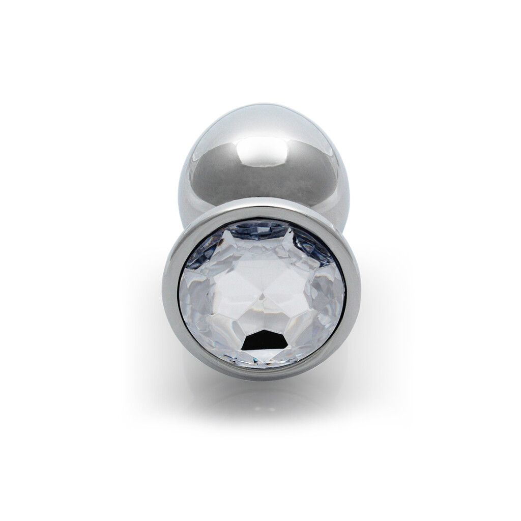 With its smooth metal surface and gemstone-studded base, this butt plug is a real gem.
