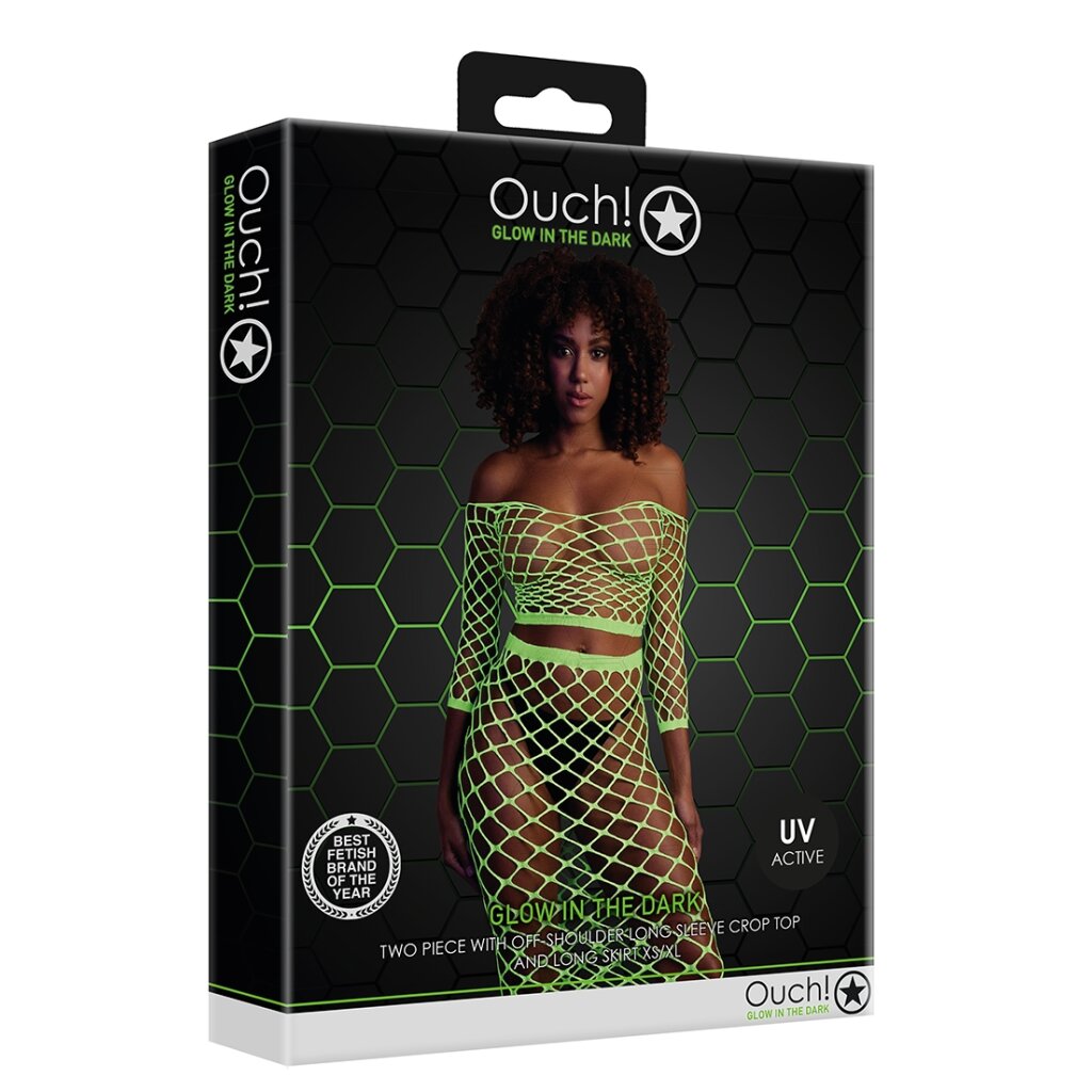 Shots Ouch!  UV-Neon Langarm Crop Top und langer Rock grün Onesize - Queensize
