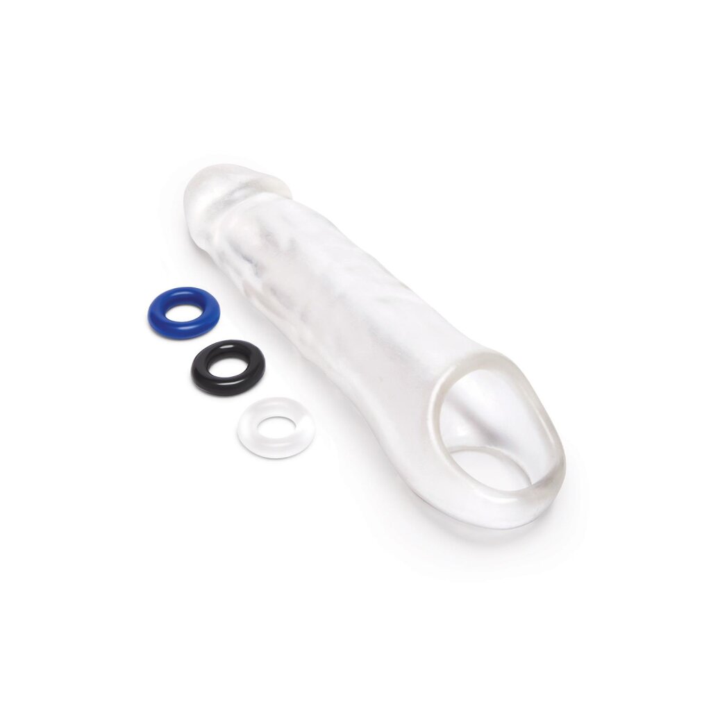 Fügen Sie zusätzliche Länge und Umfang mit dem 3“ See-Thru Penis Extender von Size Up hinzu. Die realistische Form, die Details und die strukturierte Oberfläche sorgen für das ultimative Erlebnis in Sachen Lust und Spiel, das Ihnen und Ihrem Partner das Erlebnis Ihres Lebens beschert. Das transparente Design sorgt für eine visuelle Stimulation und die Kugelschlaufe gewährleistet eine sichere Kontrolle über Ihr vergrößertes Paket. Verwenden Sie die drei mitgelieferten Ringe, um Ihr Stehvermögen zu erhöhen und Ihr Vergnügen zu steigern.