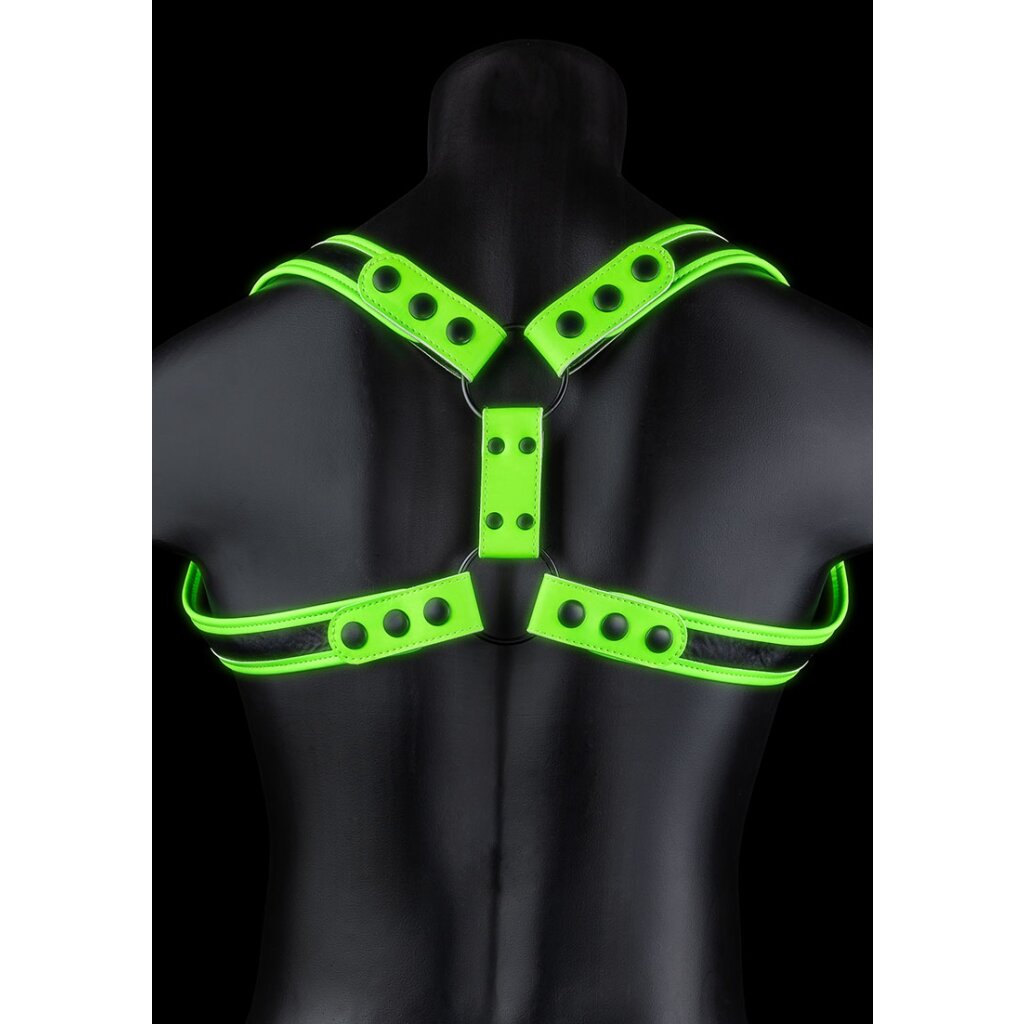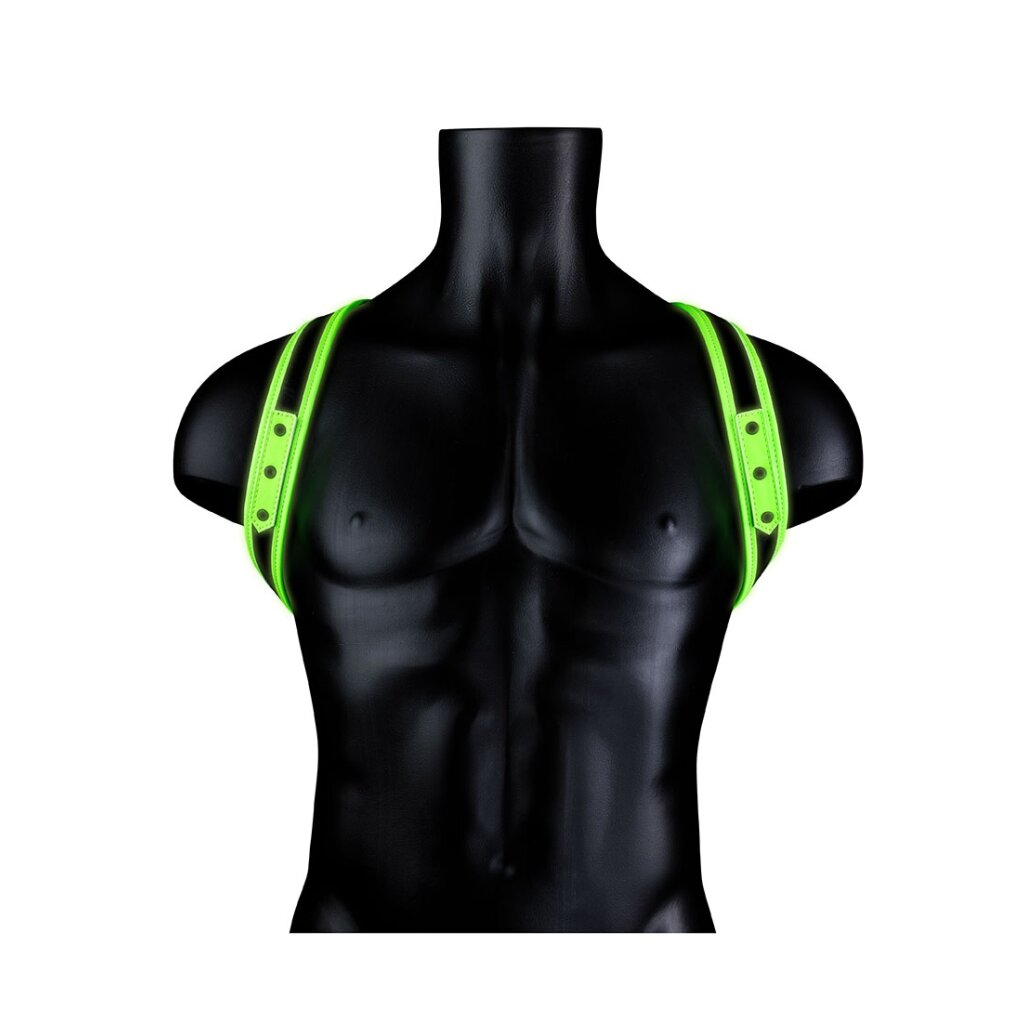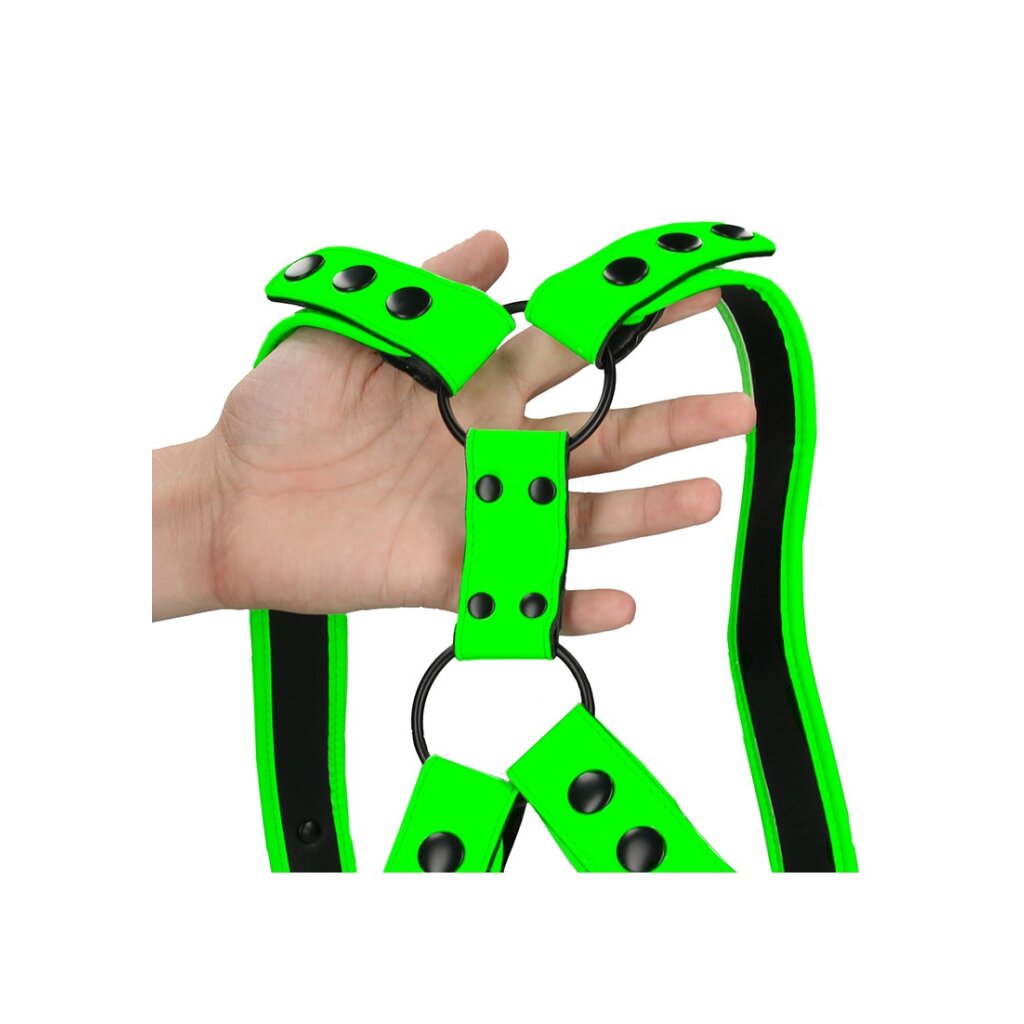 Strap yourself into this harness and maximise your masculine shape. The harness is adjustable so it fits every body type. Ouch! Glow-In-The-Dark products must be activated with the sunlight before enjoying it in the dark.