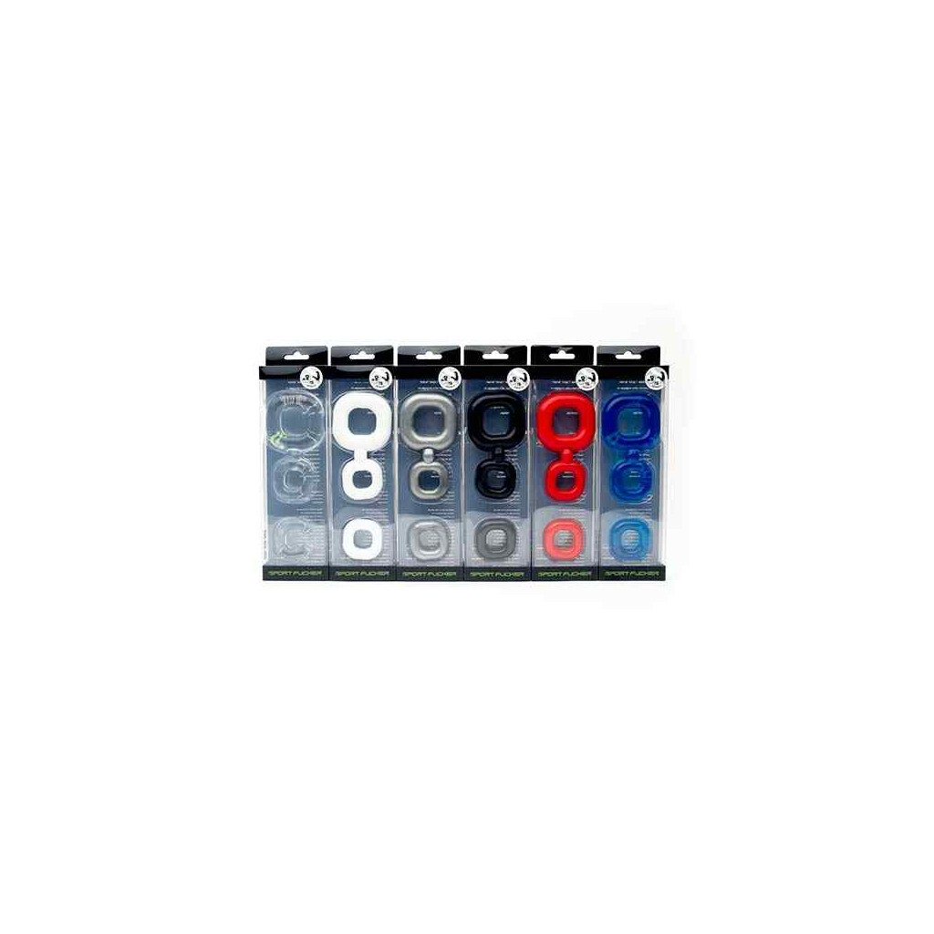 Each kit comes with one square cockring with an attached ball stretcher plus an additional loose ball stretcher. Add one or more of our expansion packs and stretch those balls even further. No need to buy the same color, combine different colors for a great sporty look.