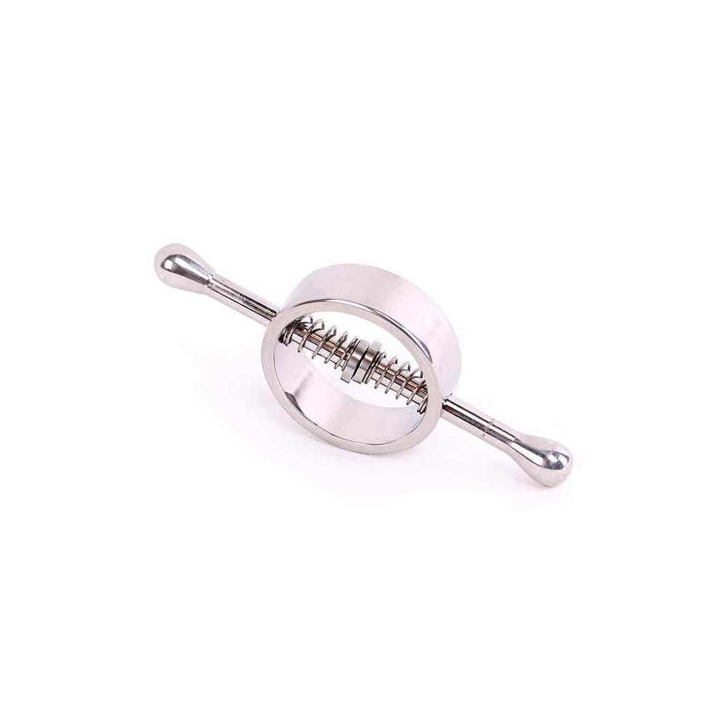 Pull on both ends to open the clamp, place the clamp on the nipples or testicles and slowly release the ends.