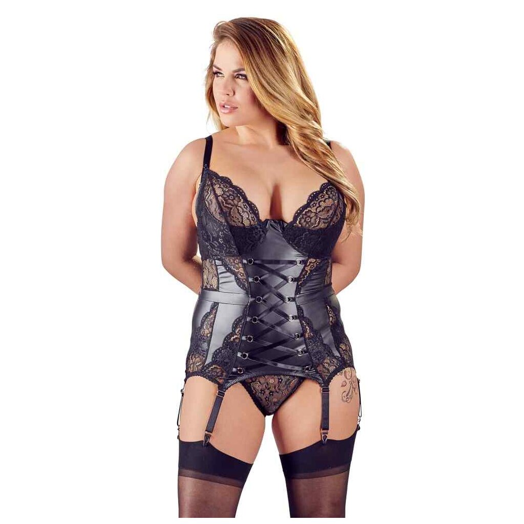 Das Hemd für jede Gelegenheit! Mit diesem Strapshemd ist man auf jeden Fall auf heiße Bondage-Nächte vorbereitet! Die heiße Mischung aus mattem Stoff und Spitze zieht alle Blicke auf sich, während drei Strapshalter an jeder Seite für den idealen Halt der Strümpfe sorgen. Die Cups sind mit Bügeln ausgestattet und leicht gefüttert, um die Brüste optimal zu pushen. Vorne befinden sich, neben Spitzeneinsätzen, eine dekorative Schnürung an roségoldenen Metallringen. Hinten zu verschließen mit einem langen Hakenverschluss und gleich daneben mit jeweils einer Handschlaufe versehen, die mit Klettverschluss zu schließen ist. Der Slip ist hinten mit einer eleganten Raffnaht ausgestattet und vorne mit Spitze und einem praktischen Hakenverschluss versehen.
