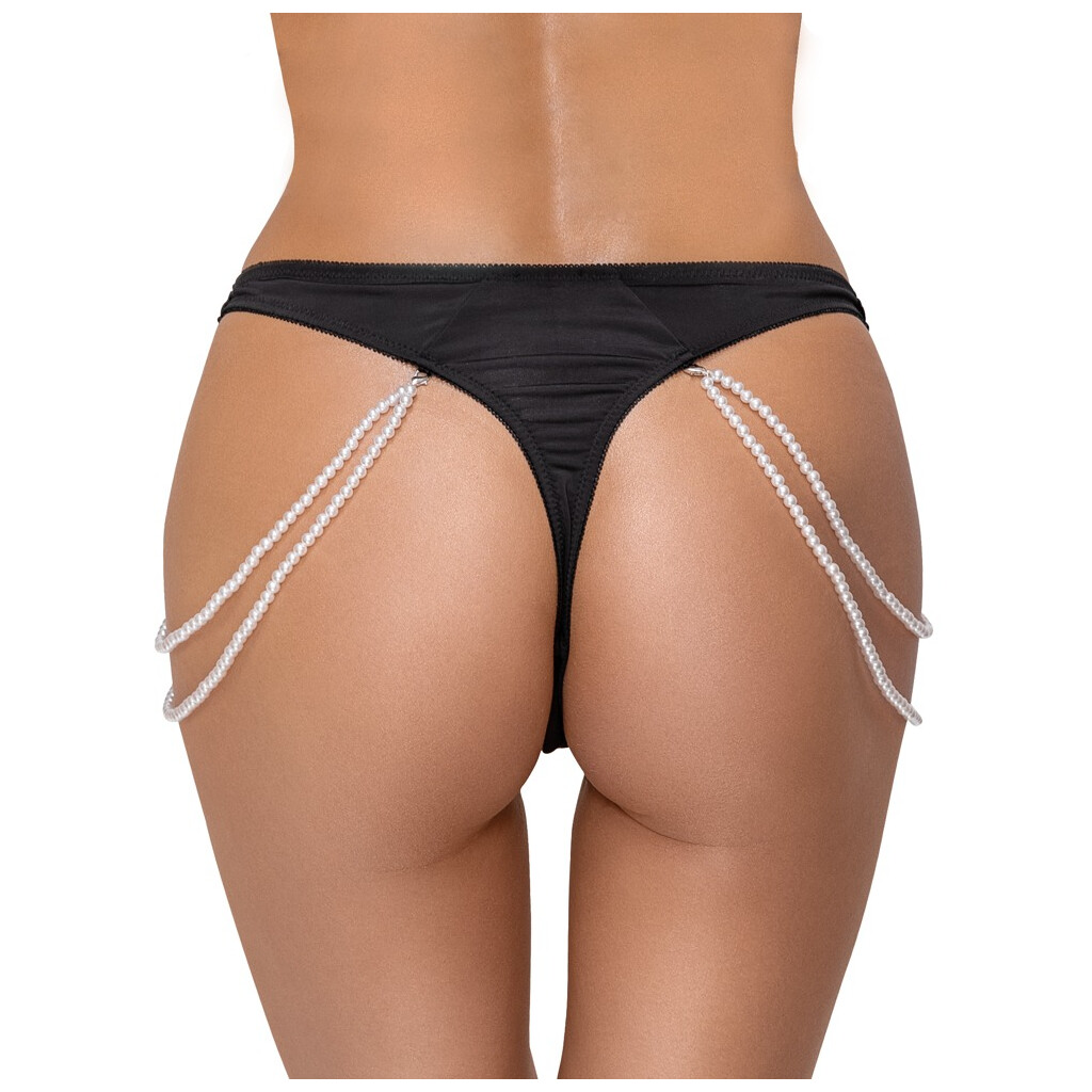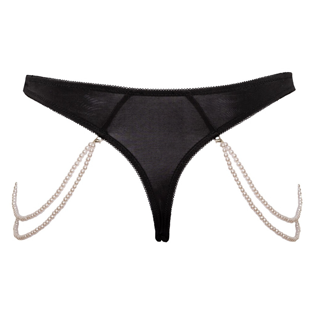 Riostring by Cottelli LINGERIE made of precious embroidery lace (front) in a mix with form-fitting stretch material. Each side with elastic double pearl chain, both of which are also completely removable thanks to small carabiners.