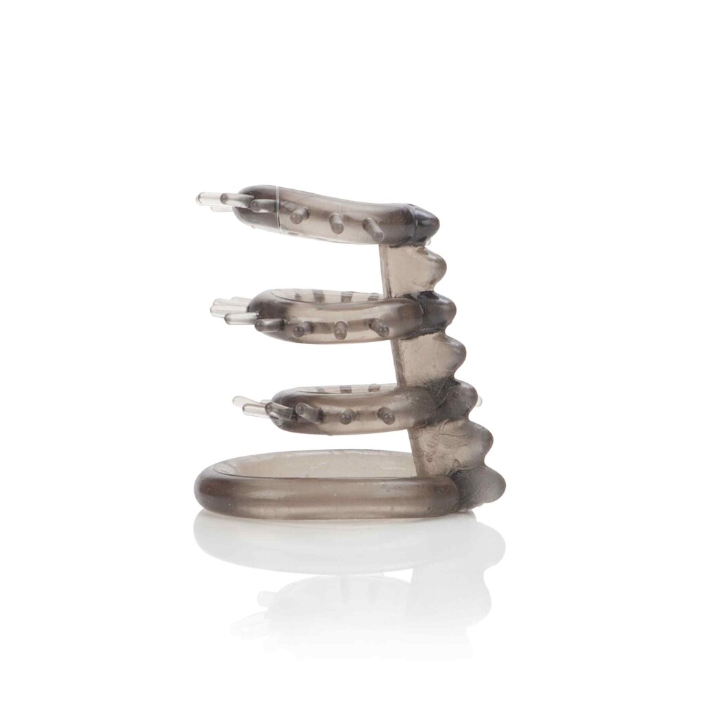 Fulfil your desires with the Dr Joel Kaplan Support Master Triple Ticklers. The sensual erection enhancer is adorned with arousing ticklers and offers combined penis and testicle support for mind-blowing hands-free placement. The Dr. Joel Kaplan Support Master Triple Ticklers cock ring measures a compact 6.25cm x 6.25cm and is made from ultra-soft and super stretchy, unscented, phthalate-free TPR. The support ring consists of 3 individual rings that comfortably wrap around the penis shaft and a larger ring that wraps around the scrotum for maximum support. The pliable, stretchy rings are erotically studded with tantalising ticklers and charms for more intense orgasmic satisfaction. The comfortable Dr. Joel Kaplan Support Master Triple Ticklers Cockring is easy to use and designed for ultimate stamina support and erection maintenance. The support ring instantly enhances your performance by maintaining a rock hard erection, for longer seduction and erotic play. Use the enhancer during foreplay or for masturbation ecstasy. To enhance the tingling and sensations, always use a high quality lubricant with this toy. Clean the triple tickle ring before and after use with a Toy Cleaner spray or mild soapy water. Total length: 6.3 cm / Diameter: 6.3 cm / Phthalate free / Material: TPR