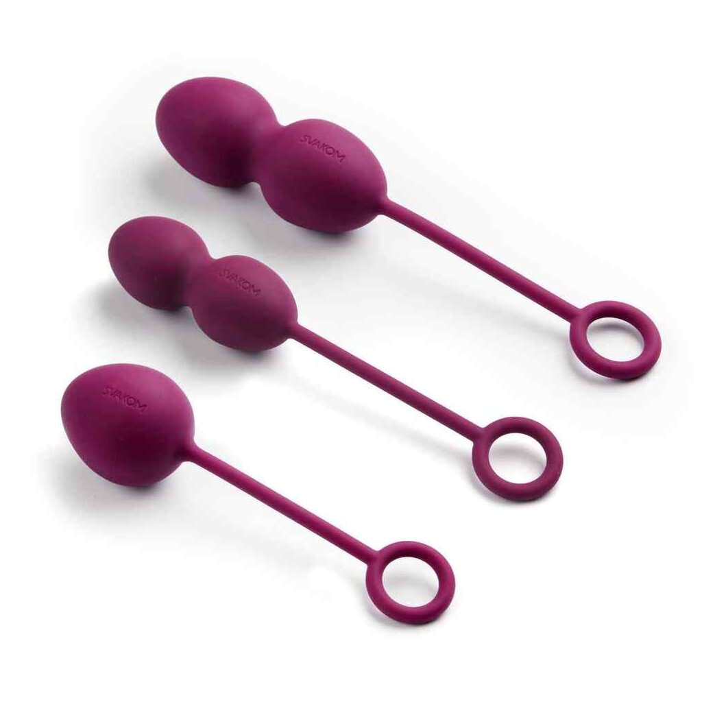 Liebeskugel-Set bestehend aus 1 Einzelkugel und 2 Kugel-Duos zur Stärkung des Beckenbodens. Mit 3 aufeinander folgenden Gewichtsstufen für ein effektives Training. Gleichzeitig wird der Durchmesser der Kugeln immer kleiner, so dass der Beckenboden verstärkt arbeiten muss, um die Kugeln an Ort und Stelle zu halten. Dazu lösen im Inneren rotierende Kugelgewichte bei jeder Bewegung Schwingungen aus, die zu kräftigenden Muskelkontraktionen führen. Ideal nach der Schwangerschaft und zur Vorbeugung von Inkontinenz. Die wasserdichten Liebeskugeln überzeugen mit der seidigen Soft Touch Textur und dem elastischen Rückholband inklusive Ring.