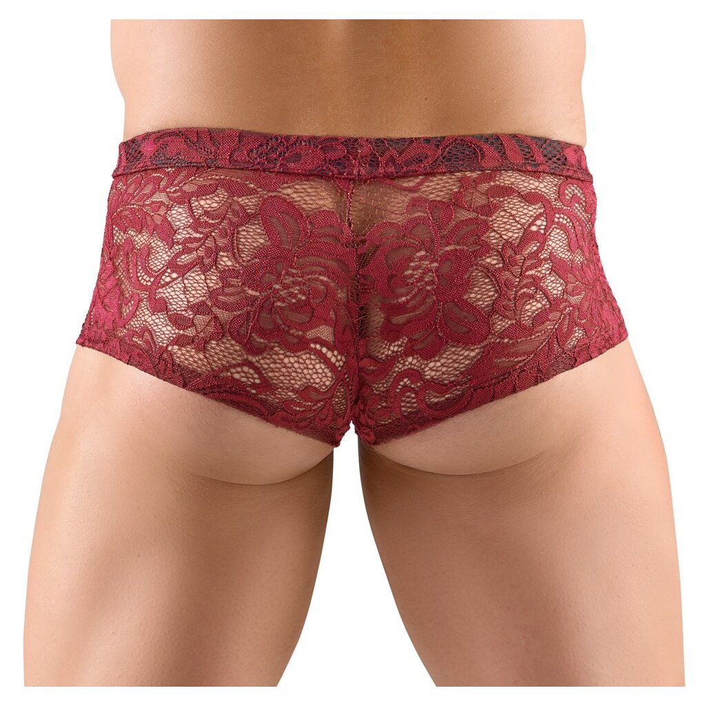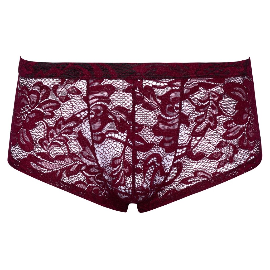 Entdecke die transparenten Pants im Spitzen-Look von Svenjoyment! Diese betonten Pants aus dunkelroter floraler Spitze