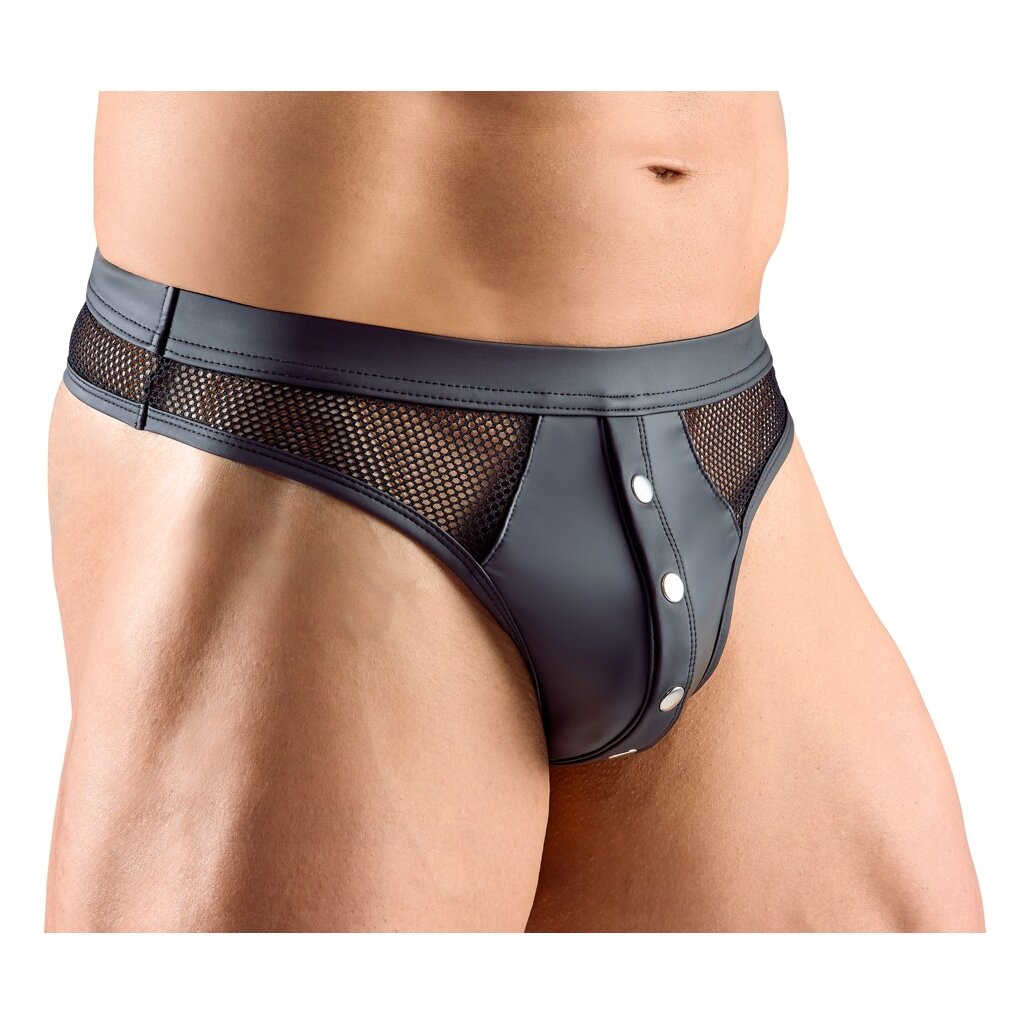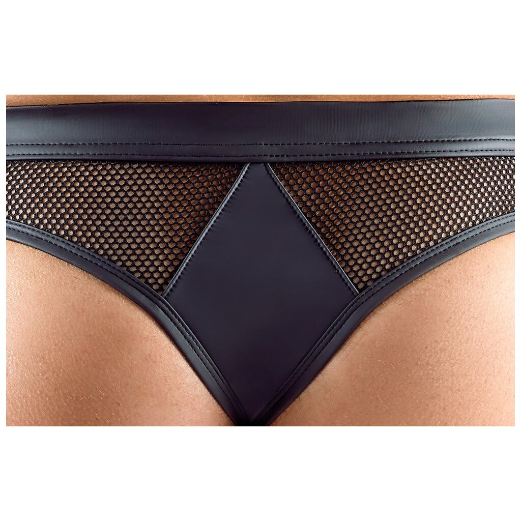 Riostring noir moulant de Svenjoyment avec ceinture élastique recouverte. Mélange de matières élastiques pour un grand confort de port : aspect mat et filet à grosses mailles. Avec des boutons-pression dans le sac pour l'ouvrir.