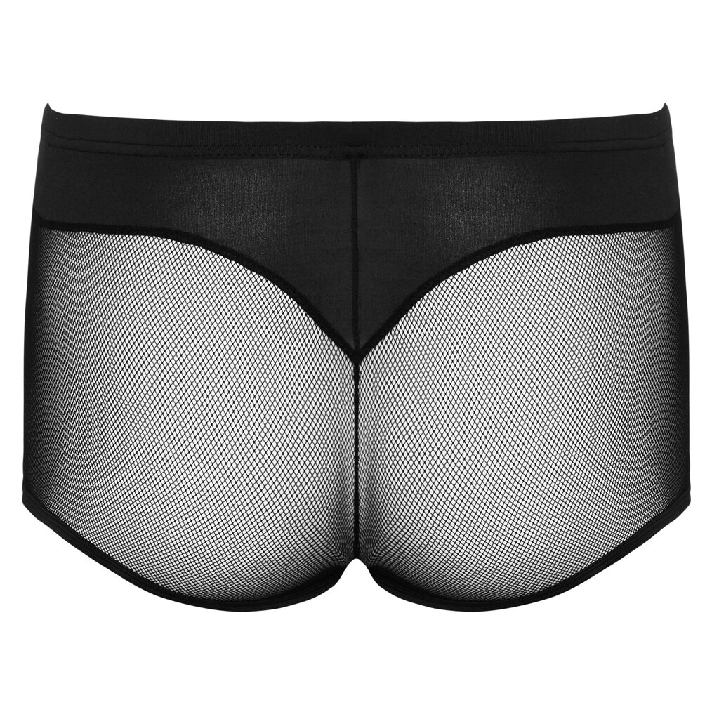 Black pants by Svenjoyment in an accentuating style. Elastic material mix with high wearing comfort: soft, opaque microfiber at the top, soft, transparent mesh at the bottom.