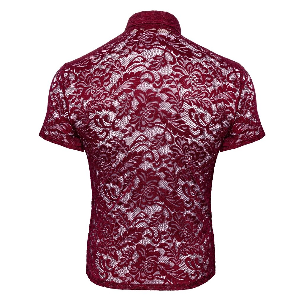 Short-sleeved shirt by Svenjoyment made from floral lace. With collar and full button placket at the front. Elasticated all around for a good fit maximum comfort included. 90% polyamide, 10% elastane.