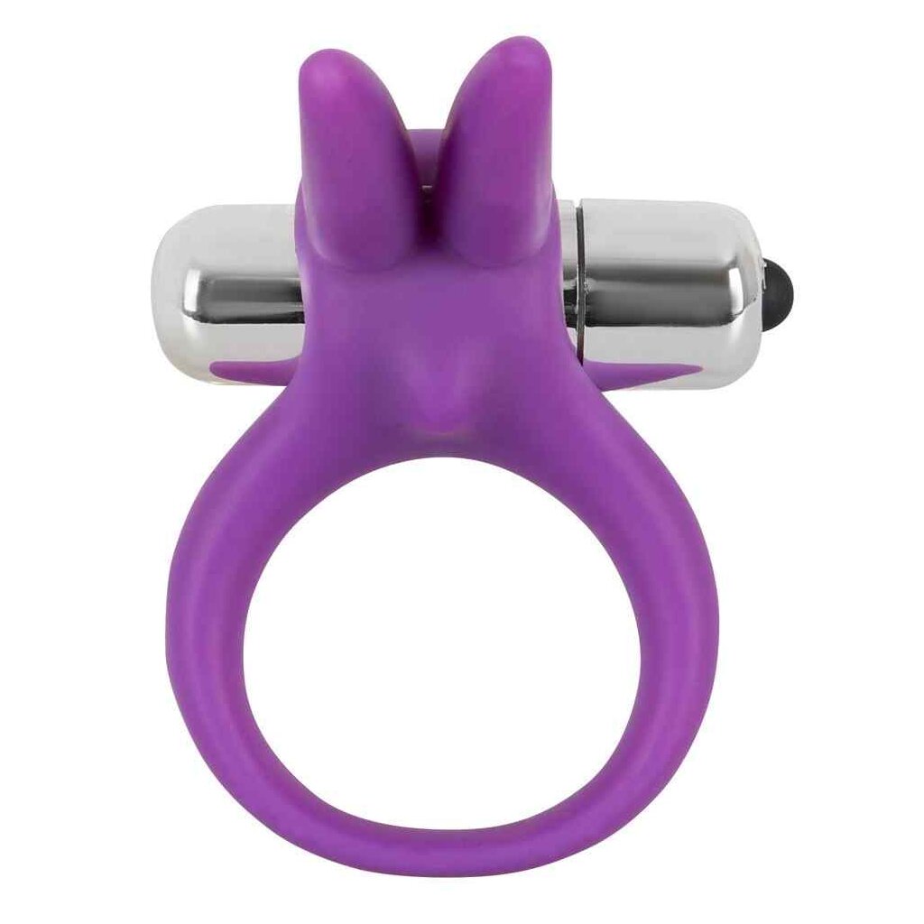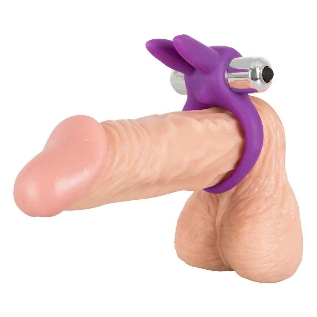 This purple penis ring provides, not only powerful erections thanks to its blood congestion effect but also pleasures your partner´s clitoris with its 3 cm long rabbit ears with removable vibro-bullet! One vibration level per push of the button. Complete length 6.5 cm, Ring-Ø 3.5 cm (flexible), ring thickness 0.4-0.8 cm. Material: silicone, ABS. Please order batteries separately: 3 x AG13/LR44.