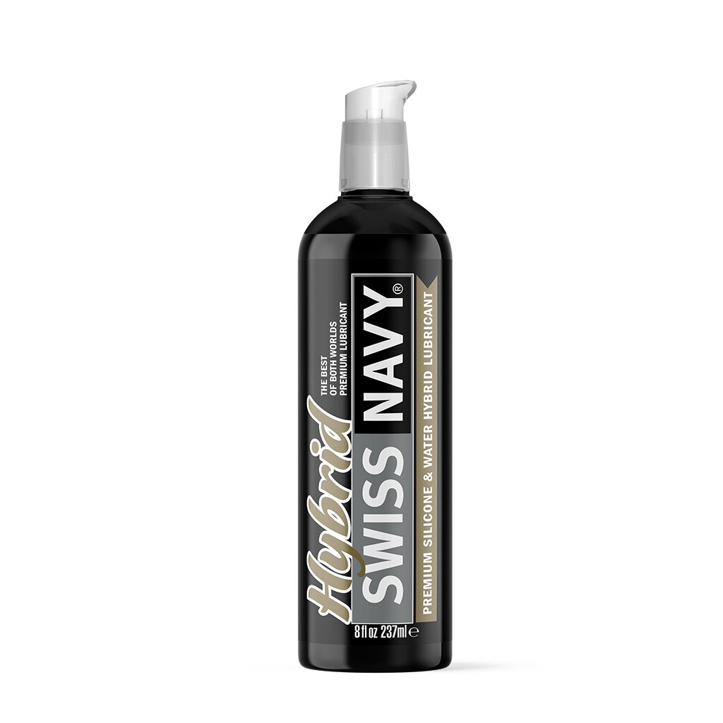 Swiss Navy Hybrid Lubricant brings you the best of both worlds. Its sophisticated formula combines the lasting smoothness of silicone with the soft, silky touch of a water-based lube. The result is a sensual experience that lasts and feels natural on the skin.