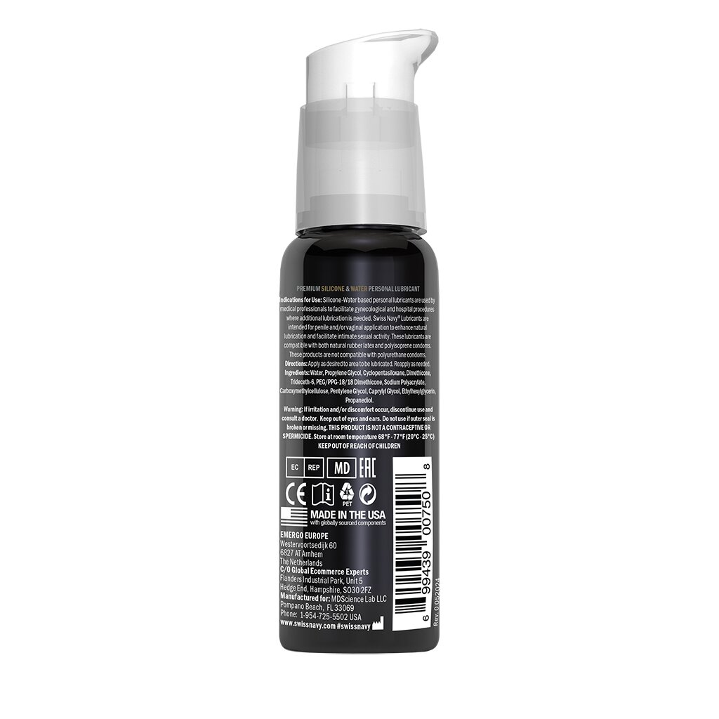 Le lubrifiant hybride Swiss Navy offre le meilleur des deux mondes. Sa formule raffinée associe la glisse durable du silicone à la légèreté fluide d’un lubrifiant à base d’eau. Le résultat est une expérience sensuelle, douce et naturelle sur la peau.