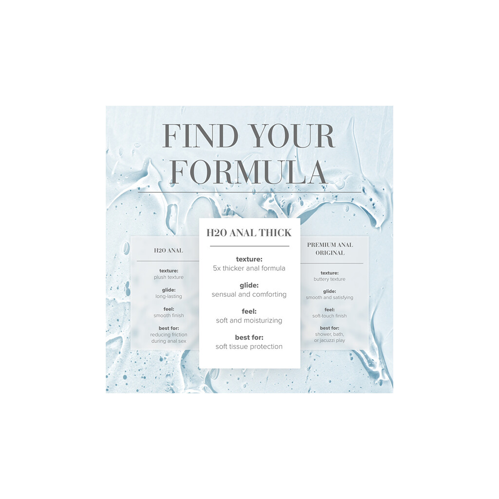 Made for those looking for an extra cushiony experience without compromising glide, this water-based lubricant delivers a smooth feel and extra protection for soft tissue.Never sticky, H20 Anal Thick is made without parabens, fragrances, or desensitizers.