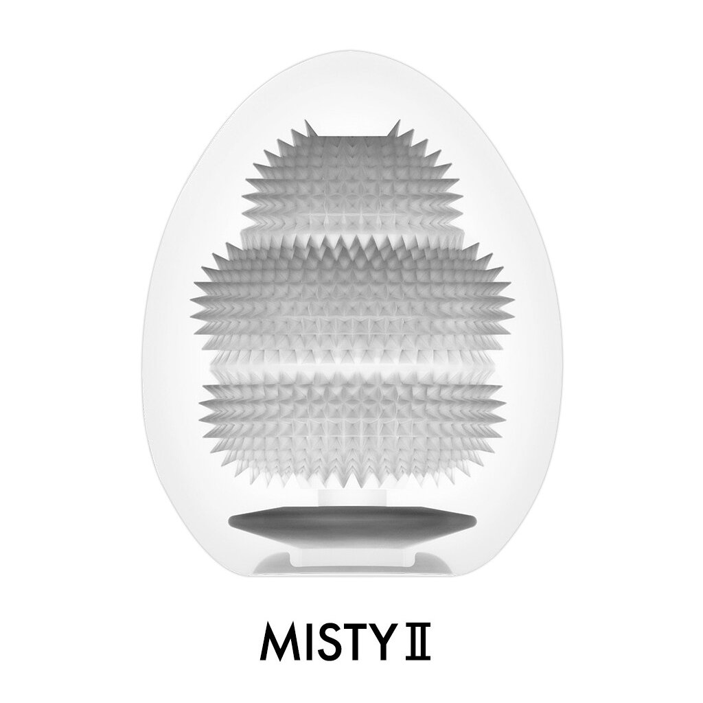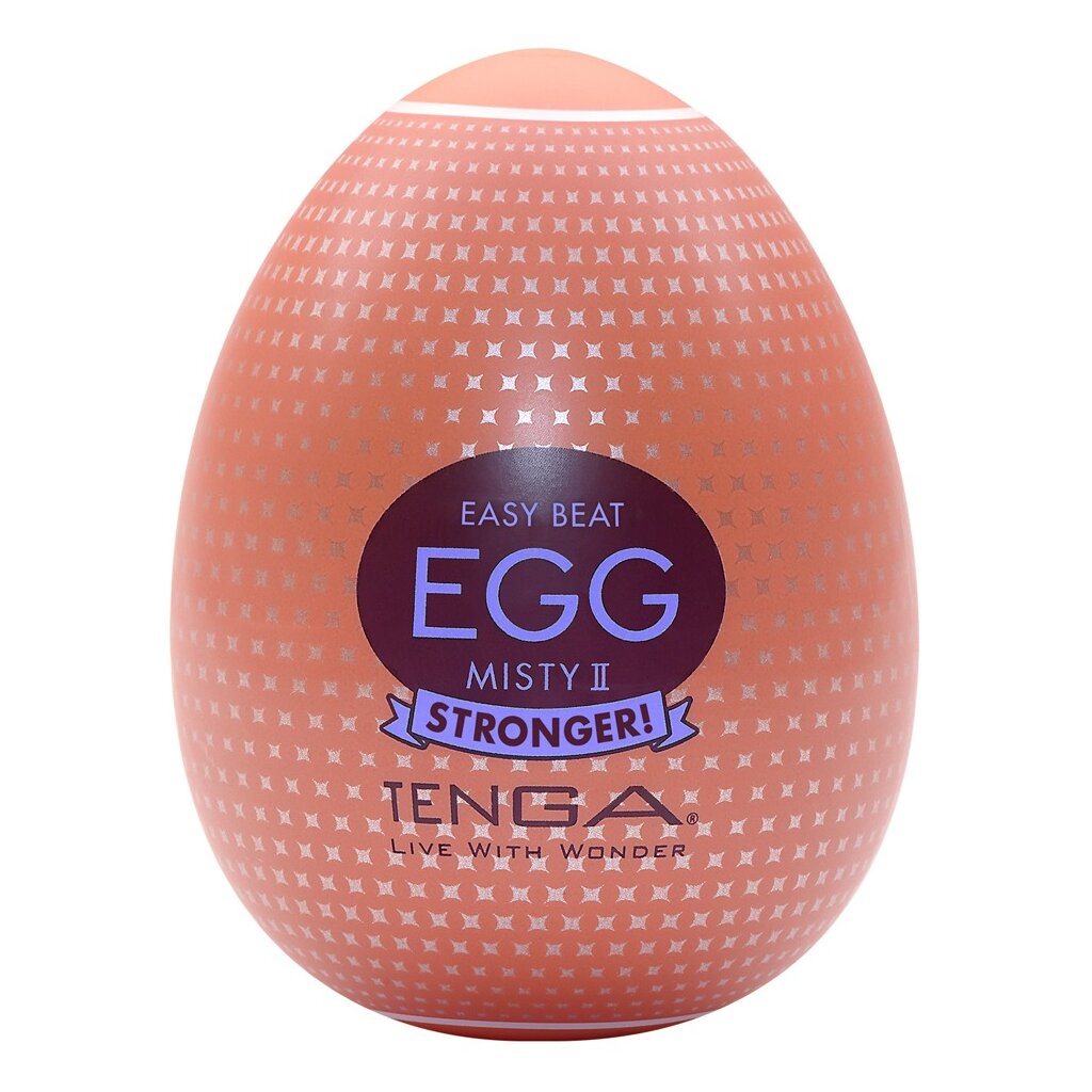 Disposable masturbator Egg Misty II Stronger from Tenga with a new intense studded texture inside for particularly strong sensations. The ultra-flexible masturbator sleeve is located in the discreet egg-shaped sleeve and is used together with the included lubricant during a handjob.