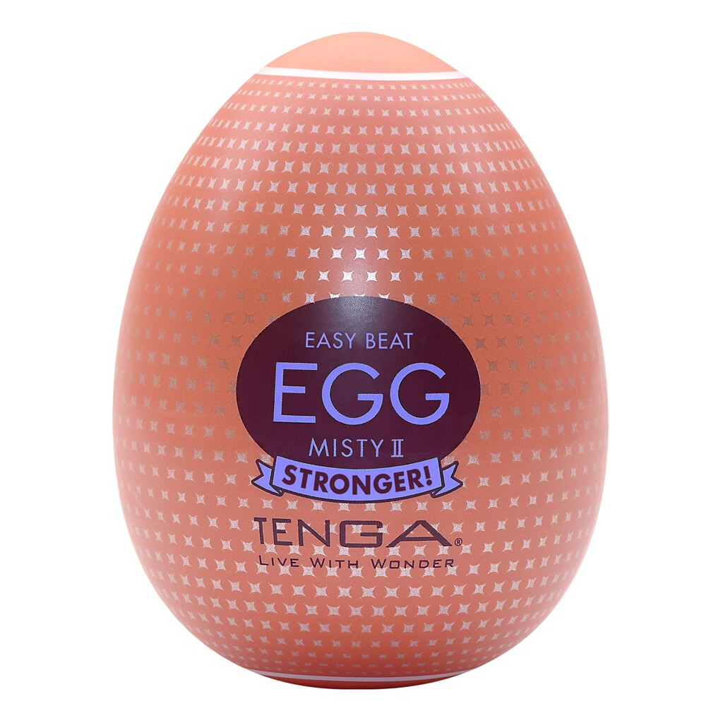 Einweg-Masturbator Egg Misty II Stronger von Tenga mit neuer intensiver Spiral-Stimulationsstruktur im Inneren für besonders starke Empfindungen. Der ultraflexible Masturbator-Sleeve befindet sich in der diskreten, eiförmigen Hülle und wird zusammen mit dem beiliegenden Gleitmittel bei einem Handjob verwendet.