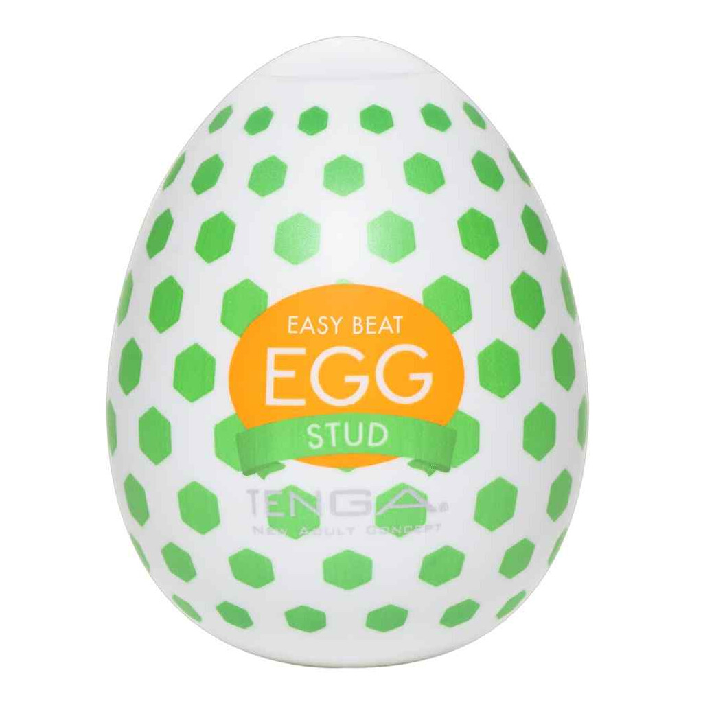 Kompakter Einmal-Masturbator Egg Stud von Tenga mit spannender Noppen-Reizstruktur im Inneren. Die ultra flexible Masturbator-Sleeve befindet sich in der eiförmigen Hülle und wird zusammen beim Handjob mit dem beiliegenden Gleitgel verwendet.