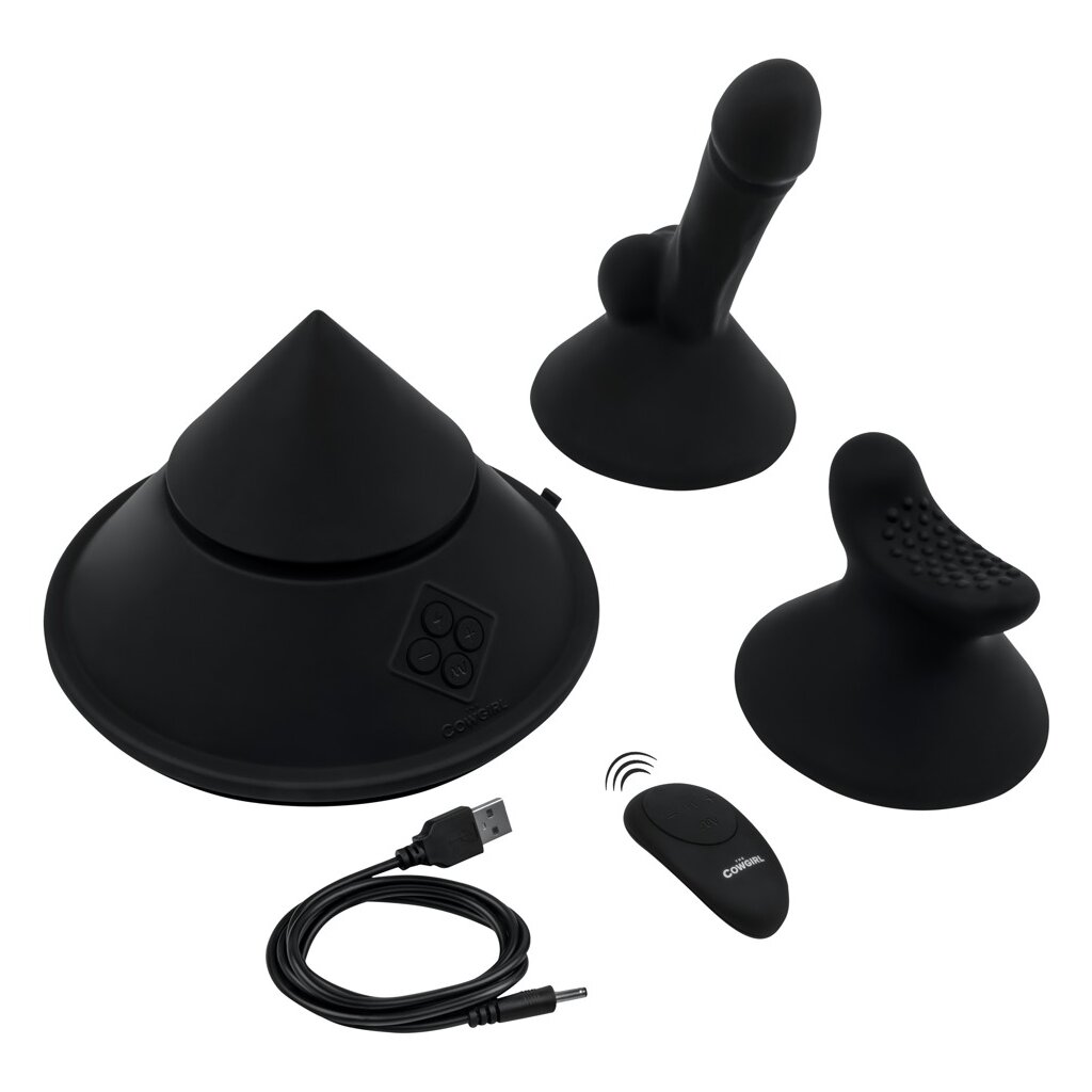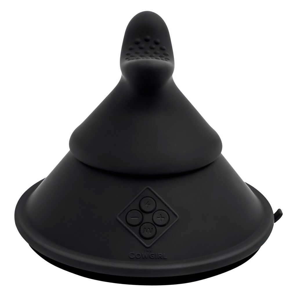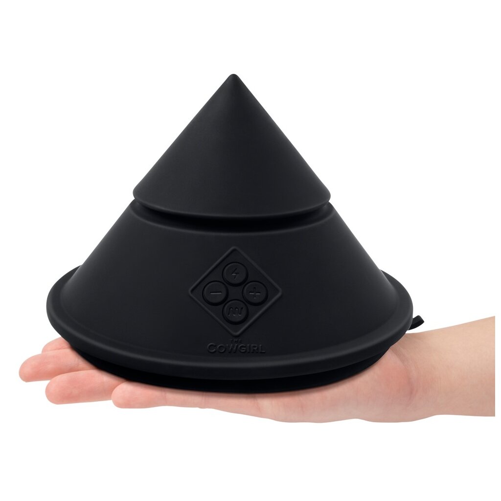 Kleine handliche Sexmaschine The Cowgirl Cone im ergonomischen Kegeldesign zum Raufsetzen, Auflegen und Anschmiegen. Vielseitig einsetz- und von allen Seiten bespielbar. Der große Saugfuß lässt sich an jeder Oberfläche befestigen und ermöglicht so freihändiges Spiel in allen Positionen.
