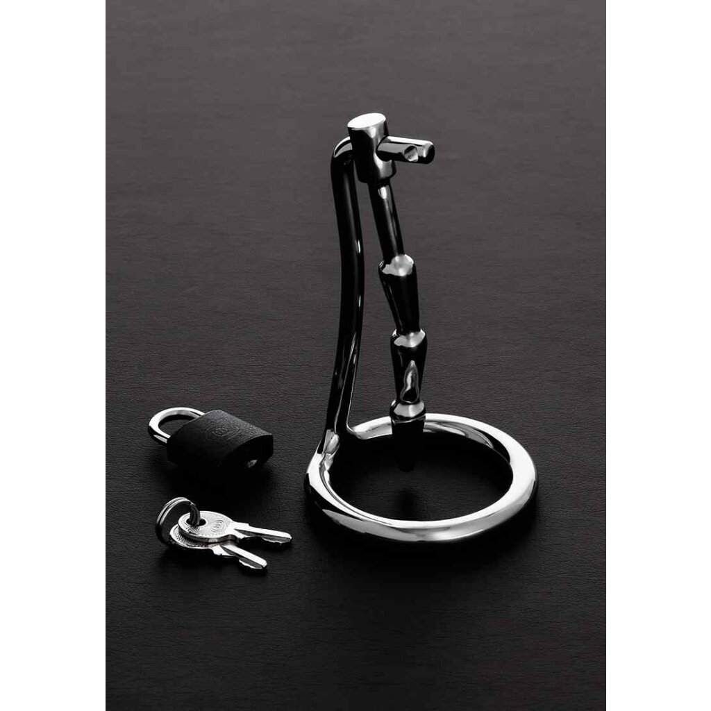 Made of stainless steel and beautifully curvy with three bumps and tapered penis plug with penis ring. You can lock it with the included padlock. A uniquely shaped combination that prevents erection.