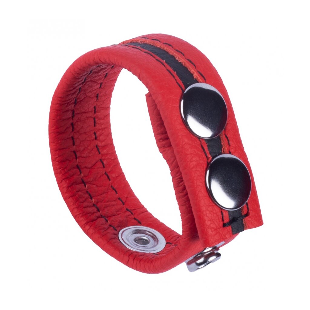 Dieser Cockring aus Tippy-Leder ist hier in seiner rot-schwarzen Version zu sehen. Er dient zur Verstärkung der Erregung, indem er die Peniswurzel zusammendrückt. Mit Metalldruckknöpfen, um den Klemmdurchmesser anzupassen. Der maximale Durchmesser beträgt 60 mm. Die Breite beträgt 2,3 cm. Hergestellt aus echtem Rindsleder. Vegetabil gegerbt.