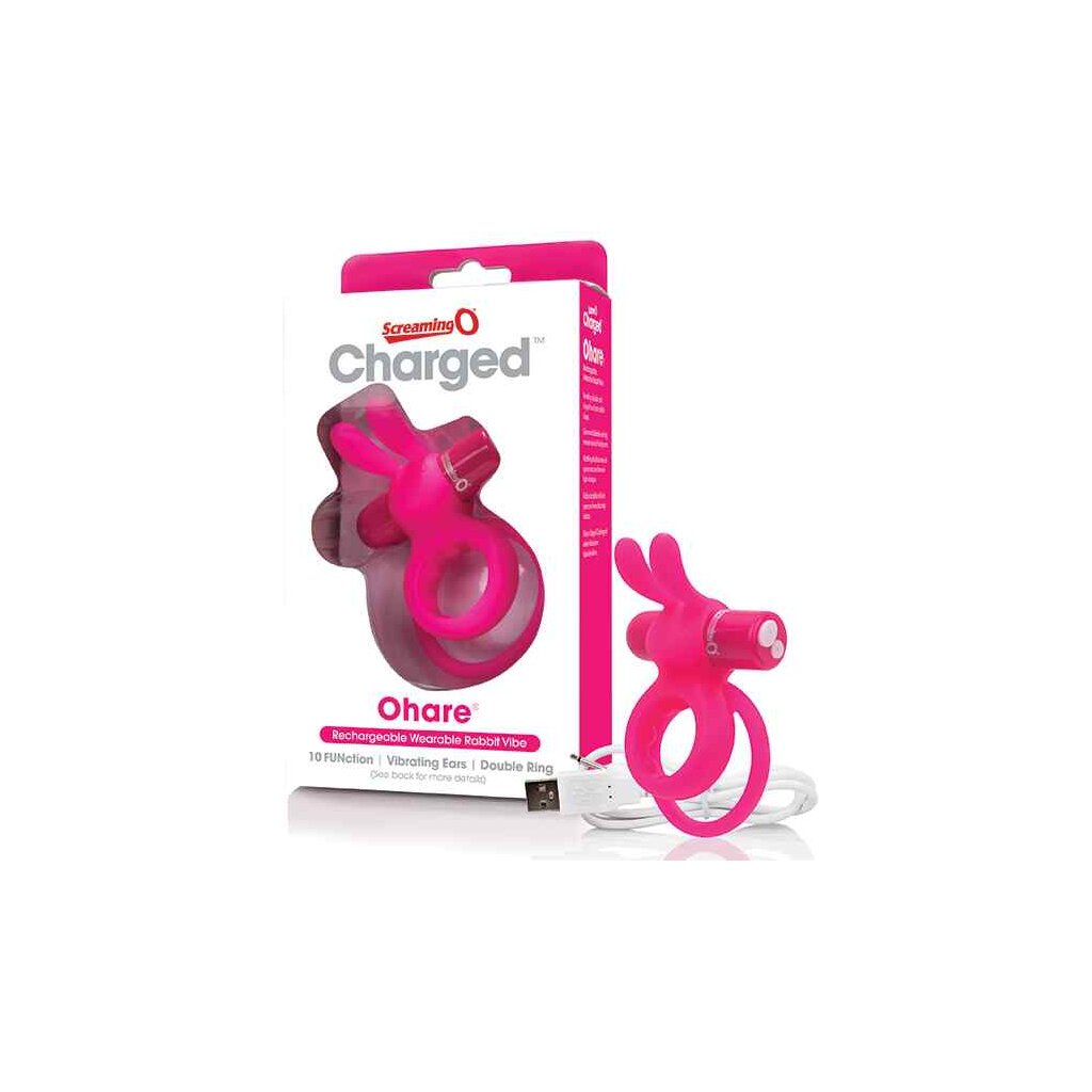 Transform your partner into your favorite rabbit vibe with the Charged Ohare, a unique rechargeable double cock ring shaped like the iconic sex toy enjoyed and adored by women around the world. The Charged Ohare features flexible ears that tingle and tremble all the way to their tips for targeted clitoral massage unlike anything you've ever felt, and its double-ring design helps keep the rabbit in place: one ring stretches around the shaft and the second stretches around the shaft and testicles, giving him a snug and secure isolation fit. The Charged Ohare is made of lab-tested, body-safe True Silicone and stretches to fit most sizes. Powered by famous Vooom bullet technology, the Charged Ohare produces a unique form of vibration that rumbles, rather than buzzes, for deep, penetrating stimulation and a dramatically different sensation that both partners can enjoy. Choose from 10 powerful vibration and pulsation functions with a simple push-button control and quickly power up with a USB cord (included) to enjoy more than 60 minutes of vibration time per charge. - Rechargeable, wearable rabbit vibe - Powered by deep, rumbling Vooom technology - 10 penetrating vibration functions - Double-ring design for a strong fit - Lab-tested, body-safe True Silicone