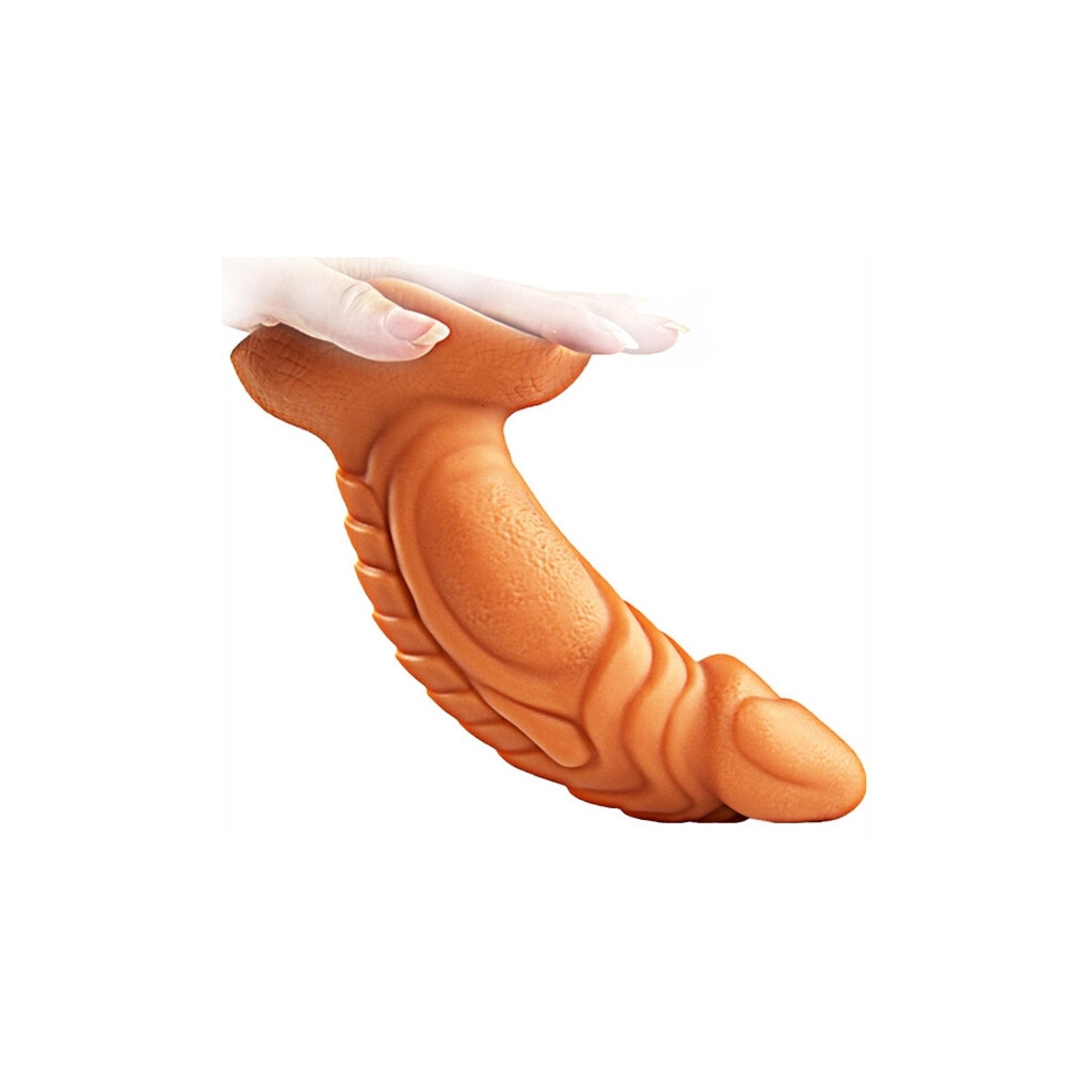 • Der Fishy Dildo ist ein Sextoy der Marke TheAssGasm, das aus einer gebogenen Form mit einer strukturierten Oberfläche besteht.