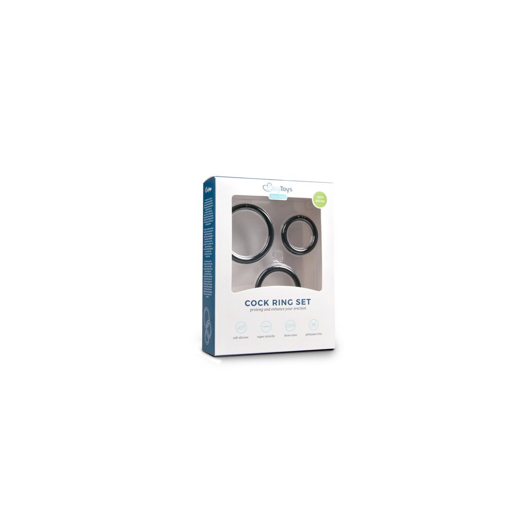 Prolong your erection with this set of three cock rings. Each one has a different diameter, so there is always one that will fit you perfectly. The soft and smooth silicone is flexible and feels very comfortable while you are wearing it. The rings are lightweight and easily fit in your pocket, so you can take them with you wherever you go. These elegant cock rings will enable you to enjoy sex play even more!