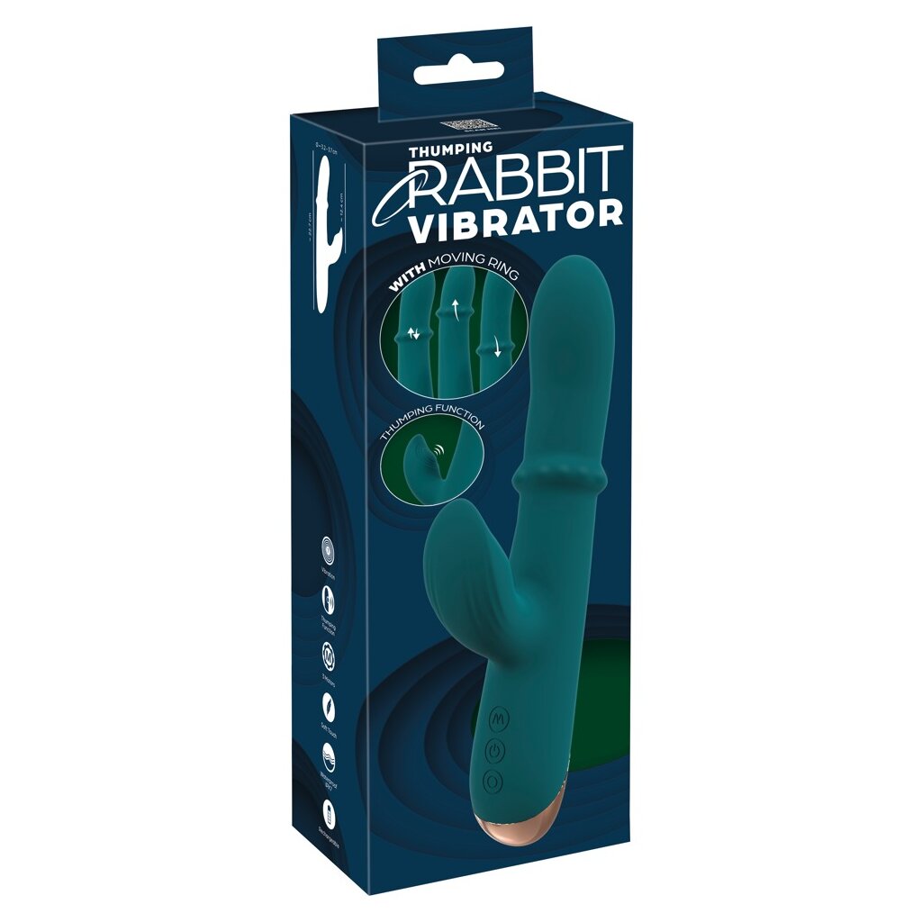 The easy-to-use Thumping Rabbit Vibrator with Moving Ring from You2Toys stimulates two pleasure zones simultaneously! The first is inside the vagina with intense vibrations and the massage ring (moving ring) that moves up and down. And on the outside, the clitoris with dynamic thumping pulses. Double pleasure for double climaxes!