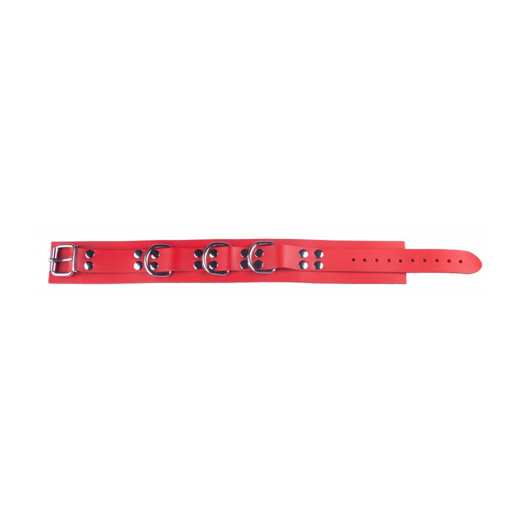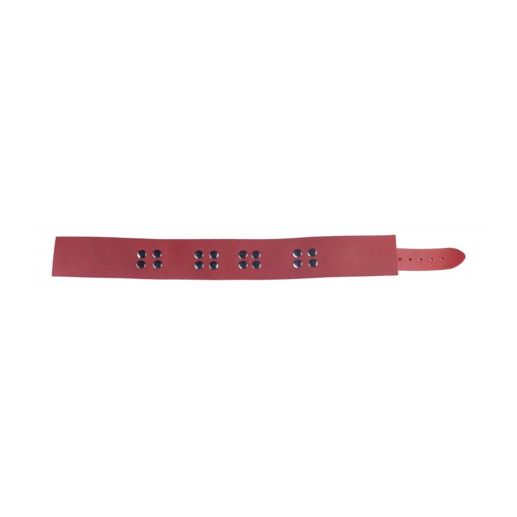 This leather necklace is an accessory designed with a width of 5.5 cm bringing a SM style. The fasteners and rings are made of metal. With a neck size from 38 to 52 cm. Genuine cow leather. Vegetable tanning. Weight: 230 gr / Width: 10.0 cm / Depth: 2.0 cm / Height: 56.0 cm