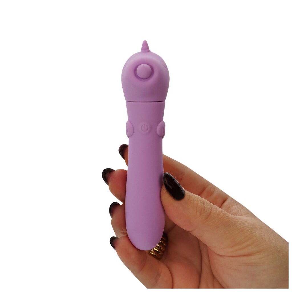Charming mini vibrator USB Karma Lilac from Unihorn in a cute unicorn design. With extra powerful vibration that can be conveniently controlled at the touch of a button in 10 different modes. Small, easy to grip, handy, and equipped with a super-soft silicone texture for maximum pampering comfort. Always with you, quick to use and rechargeable: the USB plug is located directly under the head! A magical toy for versatile hotspot games – alone, with a partner, at home, on the go and at any time.
