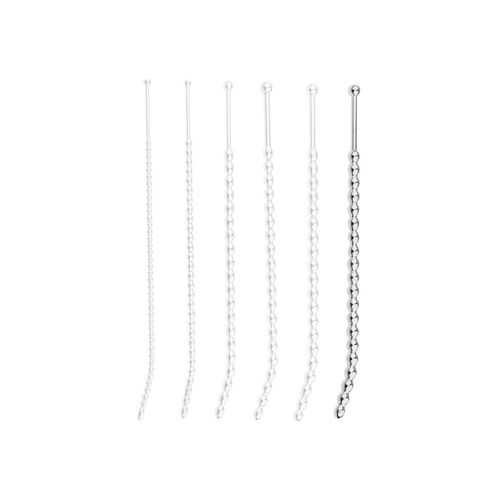 Der UrethalPlay Meadeep Dilator XXXL ist durch seine außergewöhnliche Länge und die charakteristische Abfolge gleichmäßig geformter Kugeln klar auf eine bewusste, strukturierte Anwendung ausgelegt. Die glatte Metalloberfläche unterstreicht den funktionalen und zugleich hochwertigen Charakter dieses Designs.