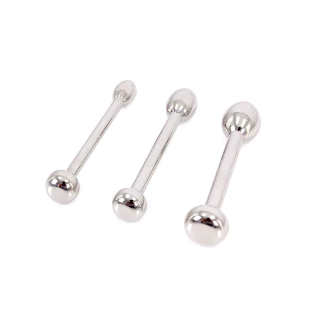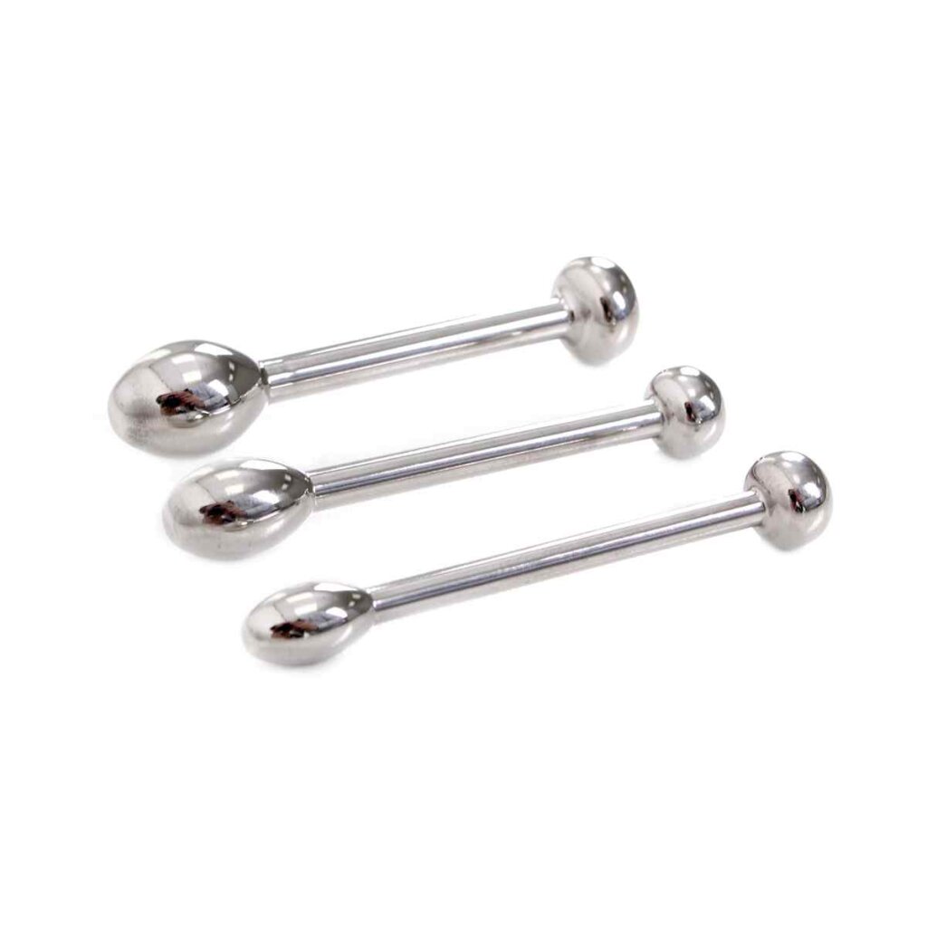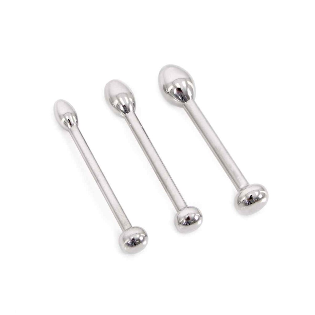 Dieses Edelstahl Urethral Trainer Kit enthält 3 Plugs mit Durchmessern von 6 mm bis zu 10 mm. Das perfekte Set für Anfänger eines Sound- oder Penisplug-Fetischs. Die Penisplugs sind fest, so dass Ihre männlichen Säfte nicht austreten können. Sie haben einen einzigen Ball für ein erstaunliches Gefühl. Mit einer einführbaren Länge von 44 mm ist es die perfekte Länge für den Einstieg.
