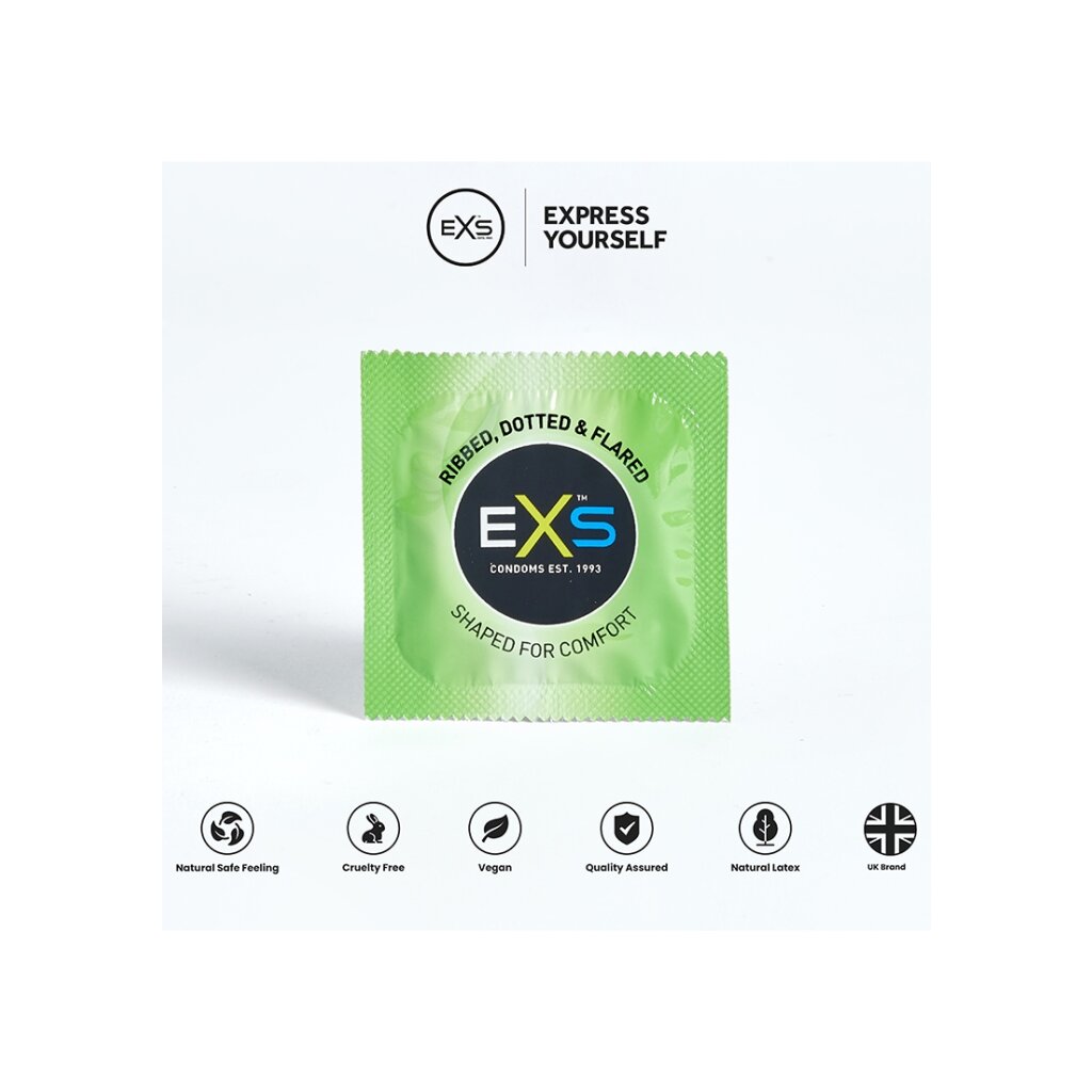 Enthält eine Auswahl von 48 EXS-Kondomen aus Premium-Latex. Glatt, aromatisiert, glatt, strukturiert oder ultradünn? Die Wahl des besten Kondoms ist alles andere als einfach, und genau da kommt das EXS Variety Pack mit Kondomen ins Spiel!