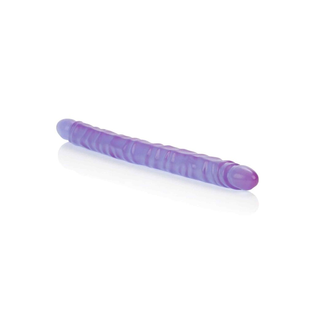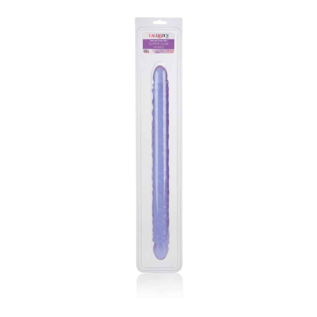 If you're looking for an extra long sex toy with two ends and a slim shape, the Slim Jim DuoVeined Super Slim Dong is a must-have for your collection. With a length of 46 centimetres from one end to the other, you and your partner will have plenty of fun. Thanks to its slim silhouette, this double penetration toy also offers beginners and first-time users of our products a smooth and comfortable ride. This double header dong comes in a stylish and designer iridescent purple finish and is made from high quality materials for the perfect look and feel. With a width of 4cm, the slim silhouette will ease you both in for the ride of your lives as you share the most intimate moments and the deepest, sensual feelings in harmony. Synchronise your sexual stimulation with this double penetration toy for couples - it's designed to feel just like the real thing, turning all your sexual fantasies into reality. The realistic, veined grooves mimic the natural furrows of the male anatomy for an authentic lovemaking experience, and the curves provide extra stimulation to the G-spot and other erogenous zones. Made from body-friendly and pliable PVC, the toy is pleasantly soft to the touch and surprisingly gentle on the skin. The Slim Jim DuoVeined Super Slim Dong is a versatile sex toy that you can try alone or as a couple. Total length: 46 cm / Diameter: 4 cm / Insertable length: 44 cm / Material: PVC plastic