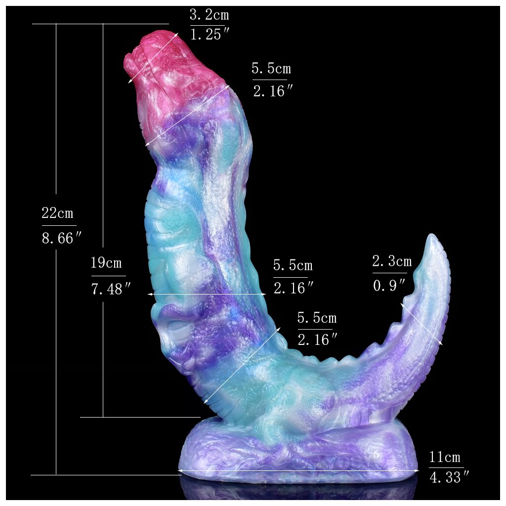 Tauche in ein aufregendes Fantasy-Erlebnis mit dem Velociraptor ein. Dieses besondere Sexspielzeug aus hochwertigem Silikon wurde inspiriert von urzeitlichen Kreaturen und bringt mit seinen detailreichen Strukturen völlig neue Reize in Dein Liebesspiel. Mit einer Gesamtlänge von 22 cm und einem Durchmesser von bis zu 5,5 cm sorgt er für intensive Stimulation, die Dich auf eine abenteuerliche Reise voller Lust und Fantasie entführt.