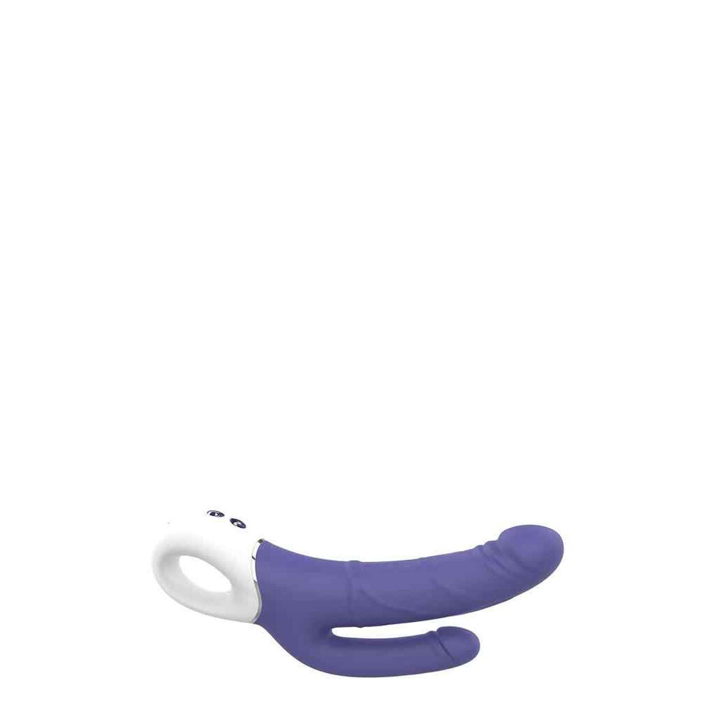 Double pleasure is within reach by a simple push of a button! The Double Pleasure vibrator from Vibes of Love offers deep vibes for simultaneous vaginal and anal stimulation. This double vibrator has two penis shaped shafts, a big one and a smaller one, so the big shaft can please the vagina while the smaller shaft provides anal penetration. Its 2 strong motors drive 9 vibration rhythms in each shaft. The vibrator is made of silicone and ABS and is easy to use. It has 2 buttons to change the vibrations in each of the shafts separately. Enjoy the vibes in bath and shower worry-free, Double Pleasure is waterproof. After use conveniently recharge with the included magnetic USB cable.