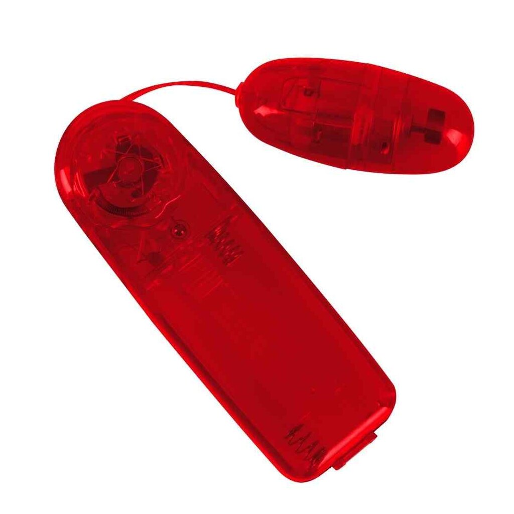 Transparent red vibro-bullet for your lust interlude for in between times. Insert the bullet into the vagina and adjust the vibration easily by using the wheel on the remote control, which is on a cable. A small lamp shows you which action is currently on. Bullet: length 5.5 cm, Ø 2.5 cm. Cable length approx. 64 cm. Material: ABS. (Please order batteries separately: 2 x Mignon/AA).