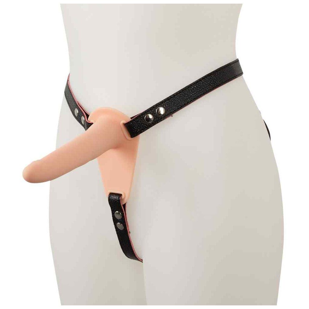 This strap-on vibrator is a thin shape and fits securely, which means that it is perfect for pegging beginners. The removable vibro-bullet has 10 vibration modes. The harness is adjustable. Includes a USB cable.