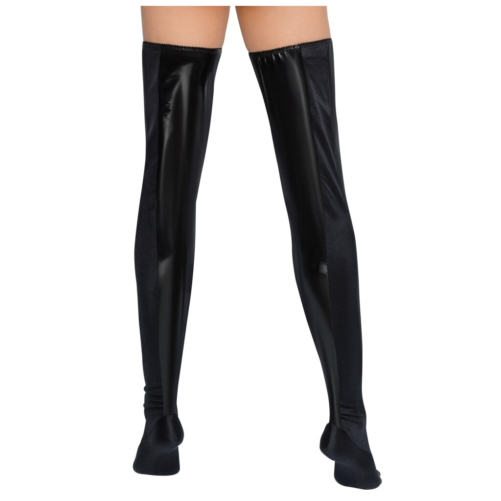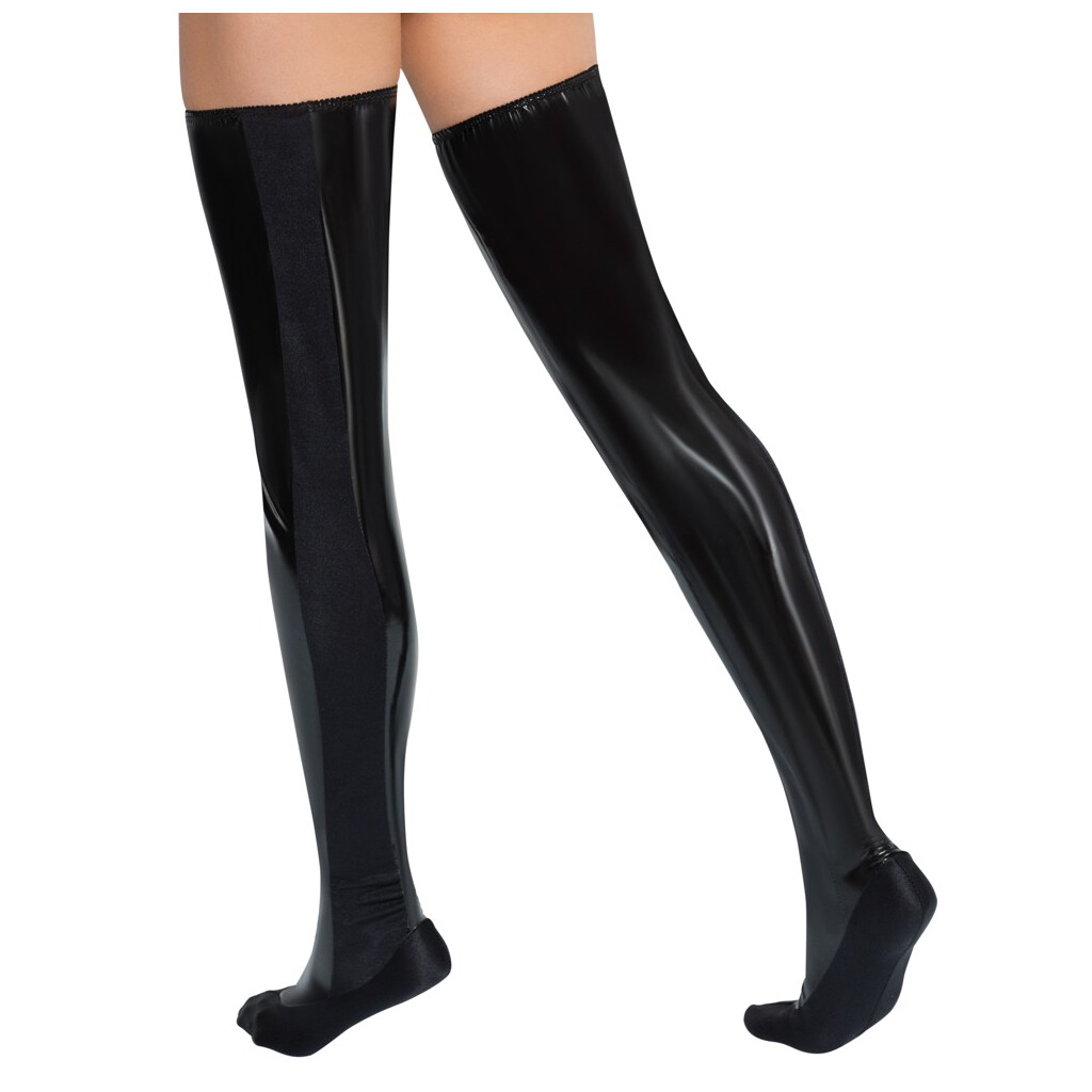 Bed boots by Black Level in black patent shine. With stretch inserts on the foot and inside of the leg as well as elastic cuffs for a perfect, close-to-skin yet comfortable fit.