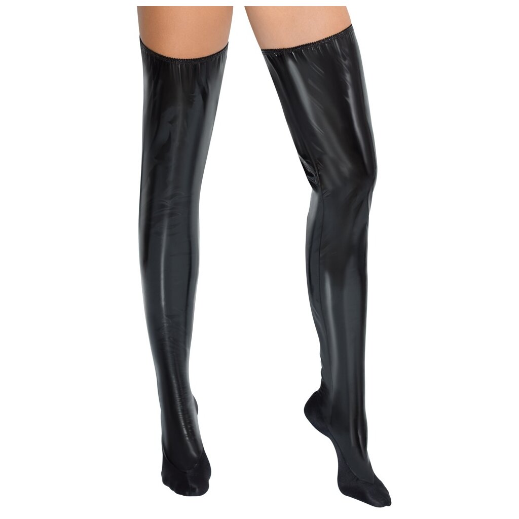 Bed boots by Black Level in black patent shine. With stretch inserts on the foot and inside of the leg as well as elastic cuffs for a perfect, close-to-skin yet comfortable fit.
