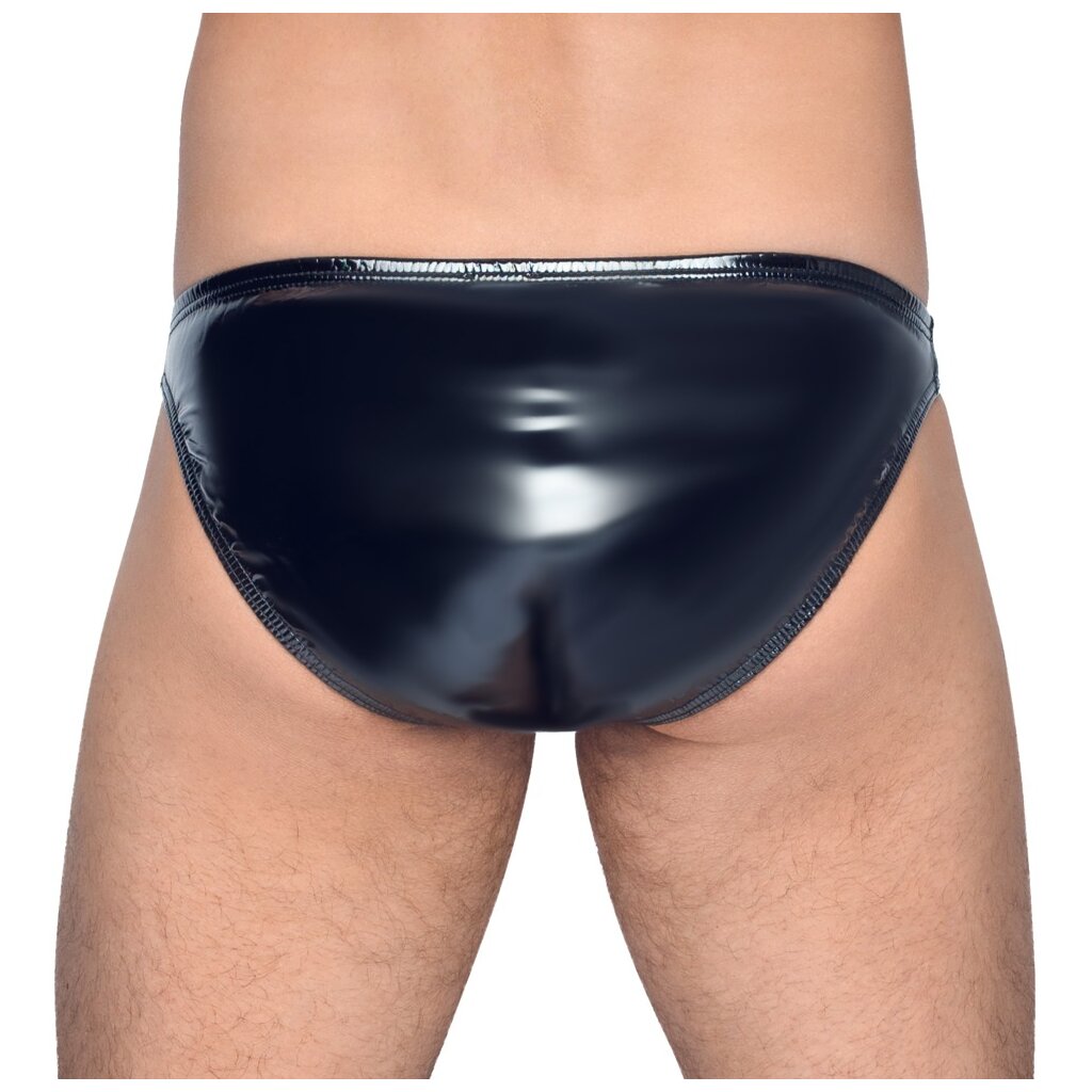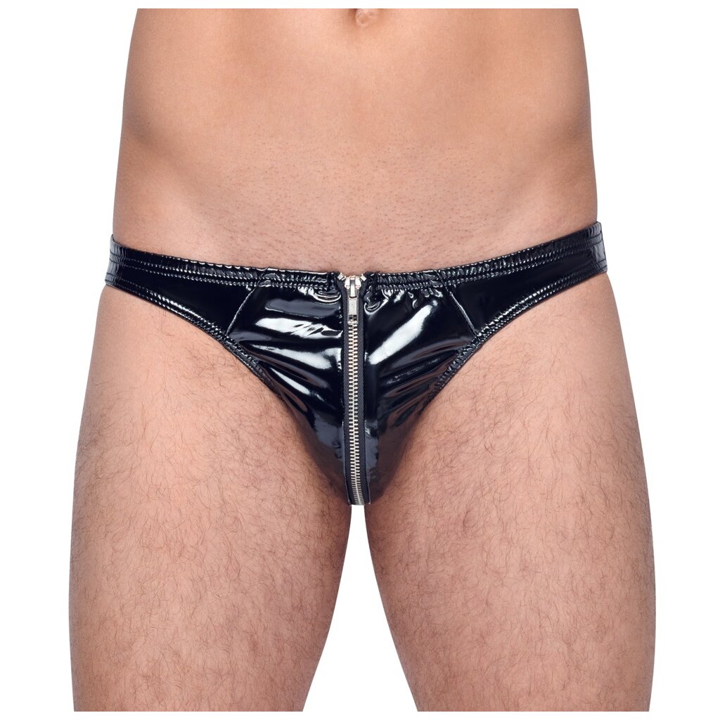 Slip noir classique de Black Level en vinyle élastique dans le sens de la longueur et de la largeur pour une coupe optimale et un grand confort. Fabrication de haute qualité avec des ourlets étroits et une fermeture éclair métallique sous-jacente à l'avant.