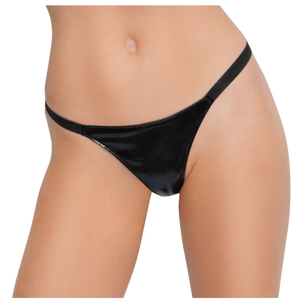 - String de Black Level avec devant en verni noir brillant. Bandes extensibles sur les côtés et à l'arrière pour un ajustement optimal. Un sous-vêtement indispensable pour tous les fans de laque !