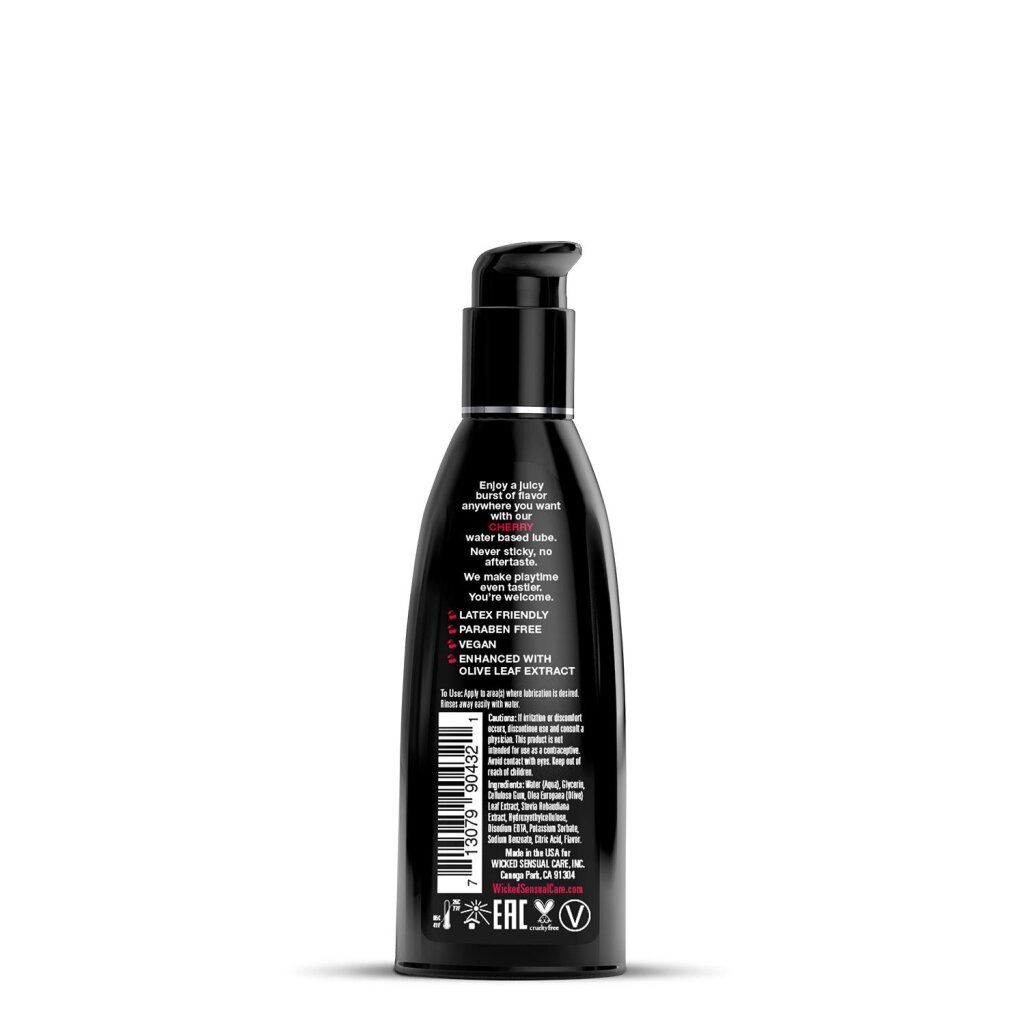 Keep calm and cherry on! Kissable, lickable, and delicious, Wicked Aqua Cherry personal lubricant adds subtle and delicious natural flavors to enhance oral pleasures. Light and silky, this water-based formula is the perfect sensual combination of an elegant lubricant and a flavor sensation. Never sticky and without an aftertaste, Wicked Aqua Cherry satisfies your sweet tooth and your intimate desires all in one amazing pleasure product. Oral sex never tasted so good. Whether you are giving or receiving, our flavors will give you a new sexy confidence.