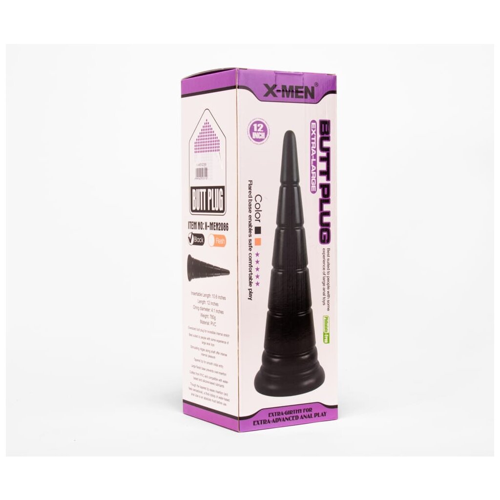 Discover new pleasure horizons with the black butt plug from X-MEN! This seductive butt plug is the perfect toy for sensual moments alone or as a couple. With a diameter of 9 cm and a length of 30.5 cm, this butt plug offers intense pleasure. Made from high-quality PVC with a silky surface and circular stimulating ribs, it provides pleasant stimulation. The special highlight of this butt plug is the practical suction cup, which can be used to attach it to a flat surface. This means you can keep your hands free and concentrate fully on your pleasurable experience. The black butt plug from X-MEN is unisex and is recommended for both men and women. The use of a water-based lubricant is recommended for a smooth experience. Immerse yourself in a world of sensual pleasures with the Black butt plug from X-MEN - a must-have for all lovers of anal stimulation.