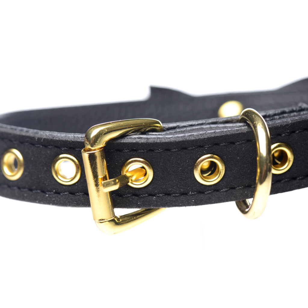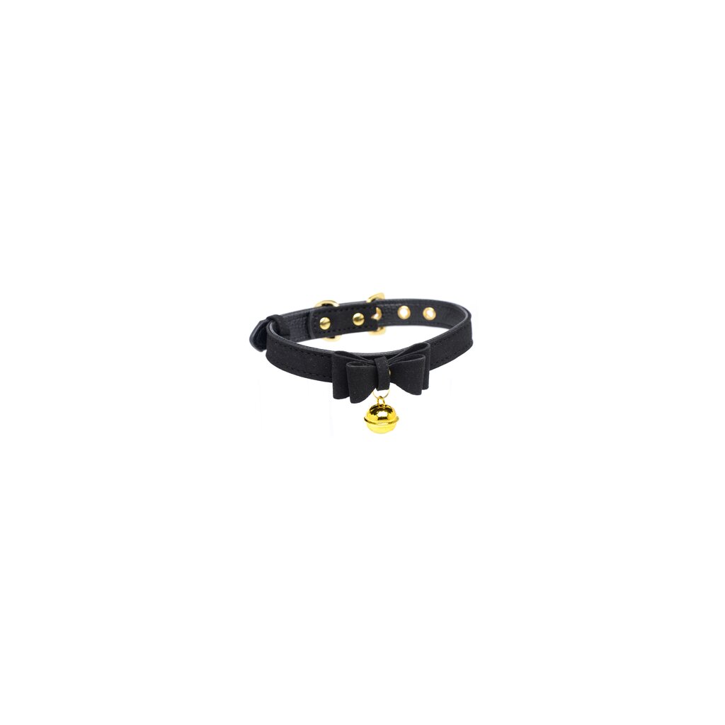 Schenken Sie Ihrem Kätzchen ein ganz eigenes Halsband! Mit der Glocke, der Fliege und der tiefschwarzen Ästhetik kann Ihr Kätzchen seine innere Unterwürfigkeit mit einem schwülen Stil zur Schau stellen! Es ist aus strapazierfähigem und dennoch weichem Polyurethan-Leder gefertigt und eignet sich besonders für ausgedehnte Kätzchenspiele. Diese Glocke bimmelt bei jedem Schlag, Schauer und Stoß! Tragen Sie dieses Halsband zu Hause oder während einer Szene, um Ihre innere unterwürfige Katze zu zeigen - die klingelnde Glocke und die weiche Textur werden Ihren Körper und Geist darauf vorbereiten, die kommende Spielzeit zu genießen! Der schwarz-goldene Akzent passt zu den meisten Persönlichkeiten, leuchtet aber am hellsten bei Unterwürfigen mit einer frechen Einstellung. Die dunkle, modische Ästhetik passt gut zu anderen dunklen Accessoires, perfekt für den Kerker oder eine Nacht in der Stadt! Die verstellbare Schnalle passt Hälse von 12,8 Zoll bis 16,5 Zoll für die perfekte Passform!