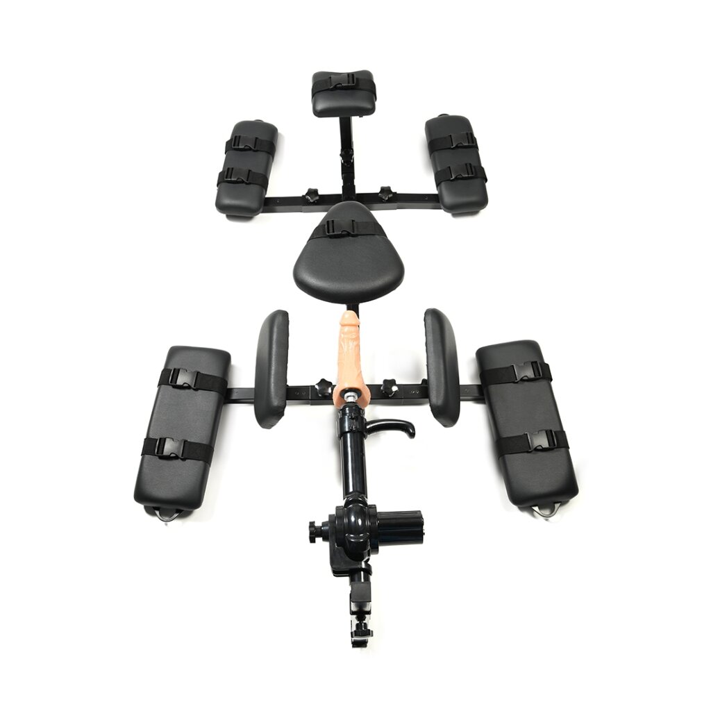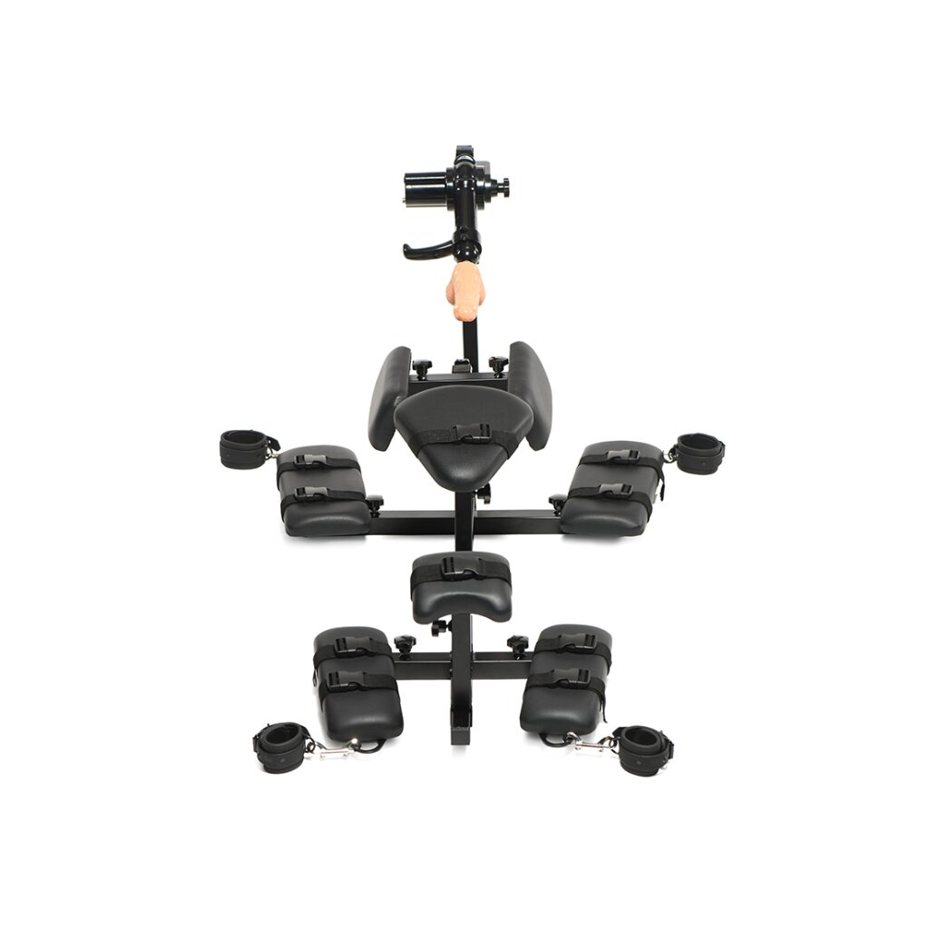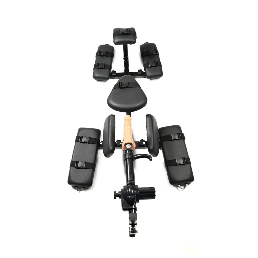 Die C-förmige Nackenstütze und die gepolsterten Kissen aus veganem PU-Leder bieten maximalen Komfort, während die 4 Befestigungspunkte für Manschetten an jedem Glied für Vielseitigkeit im Spiel sorgen.