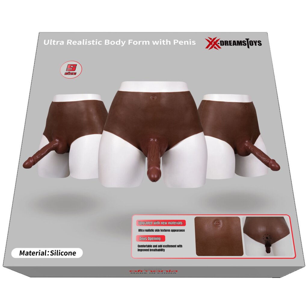Realistic looking penis. Highly stretchable. Belly button shape simulation. User with weight greater than 100kg or height greater than 190cm is not suggested to use this product. Powder on the product to keep it dry, please be aware it is not dirt!